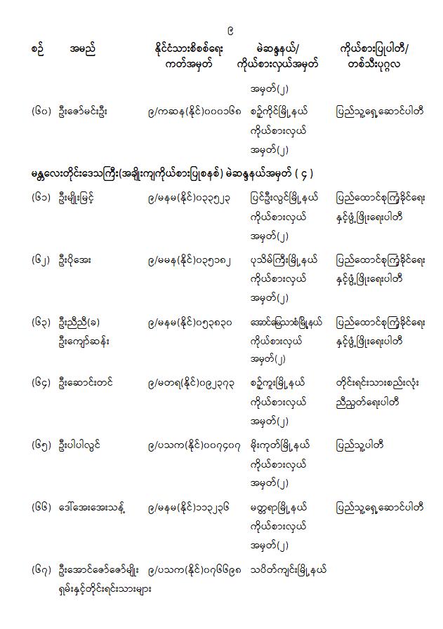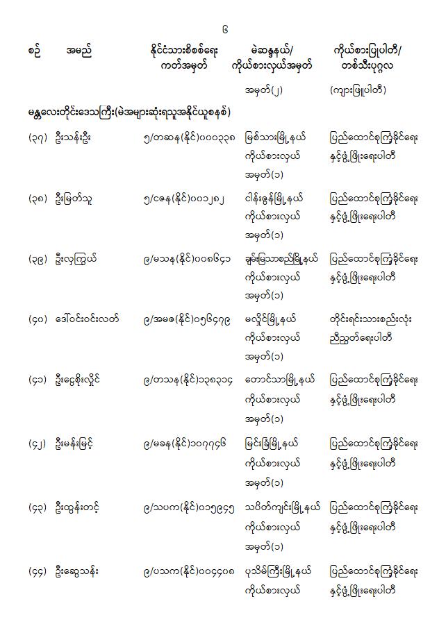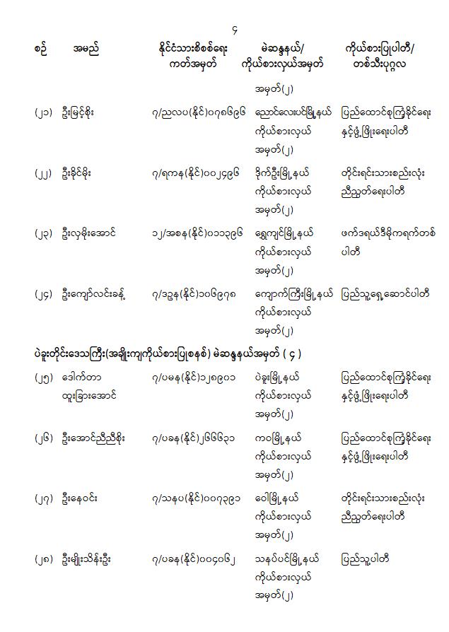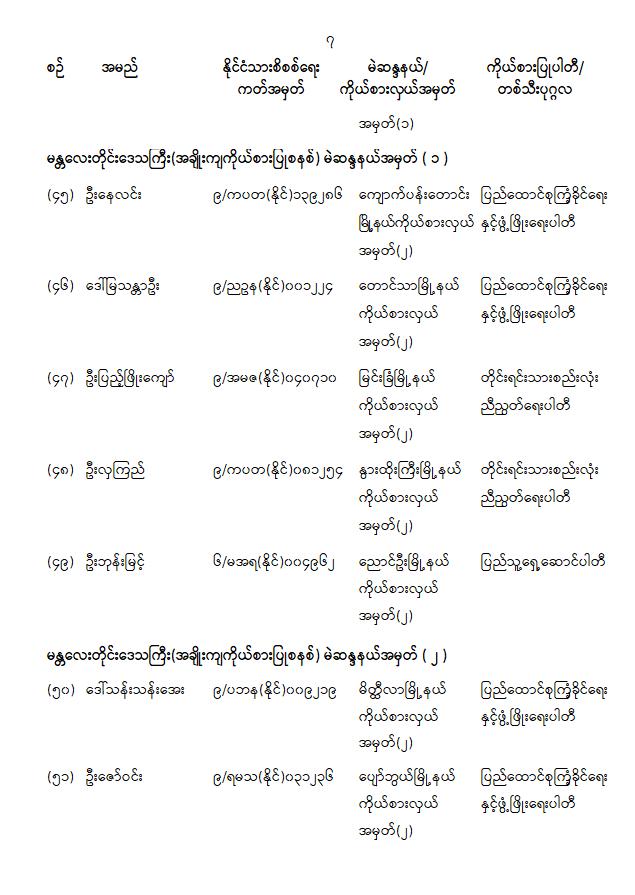 တိုင်းဒေသကြီးလွှတ်တော် သို့မဟုတ် ပြည်နယ်လွှတ်တော်ကိုယ်စားလှယ်အဖြစ် ရွေးကောက်တင်မြှောက်ခံရသူများ အမည်စာရင်းကြေညာခြင်း