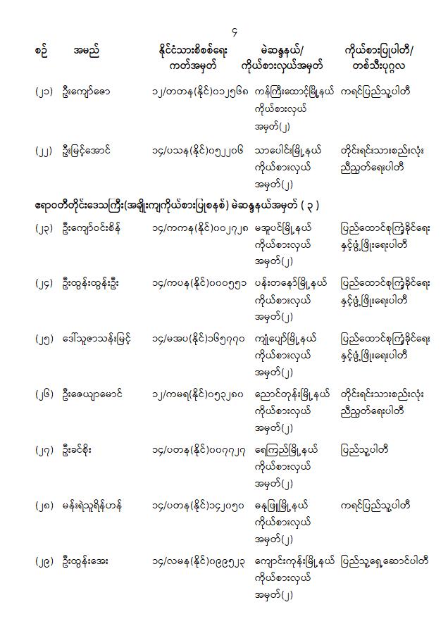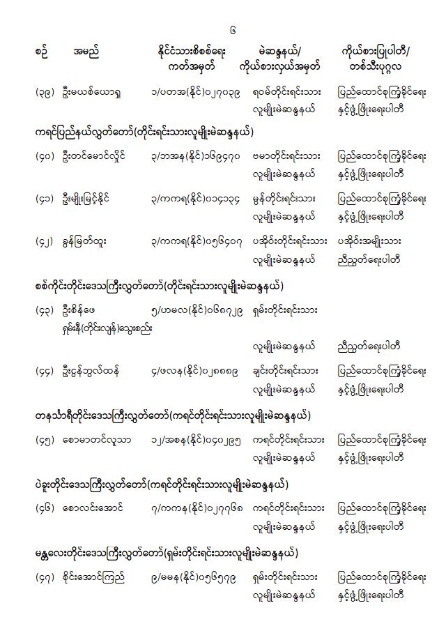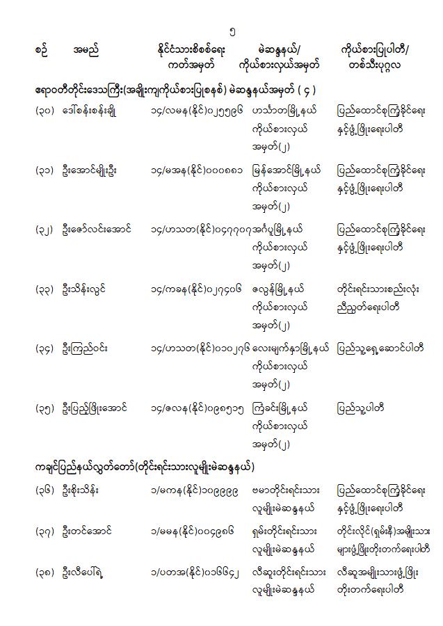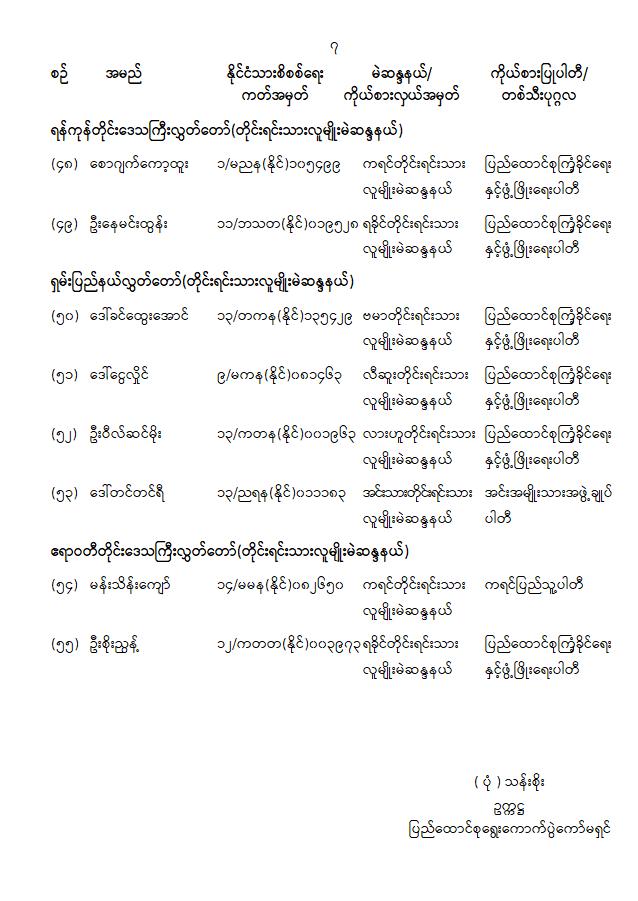 တိုင်းဒေသကြီးလွှတ်တော် သို့မဟုတ် ပြည်နယ်လွှတ်တော်ကိုယ်စားလှယ်အဖြစ် ရွေးကောက်တင်မြှောက်ခံရသူများ အမည်စာရင်းကြေညာခြင်း