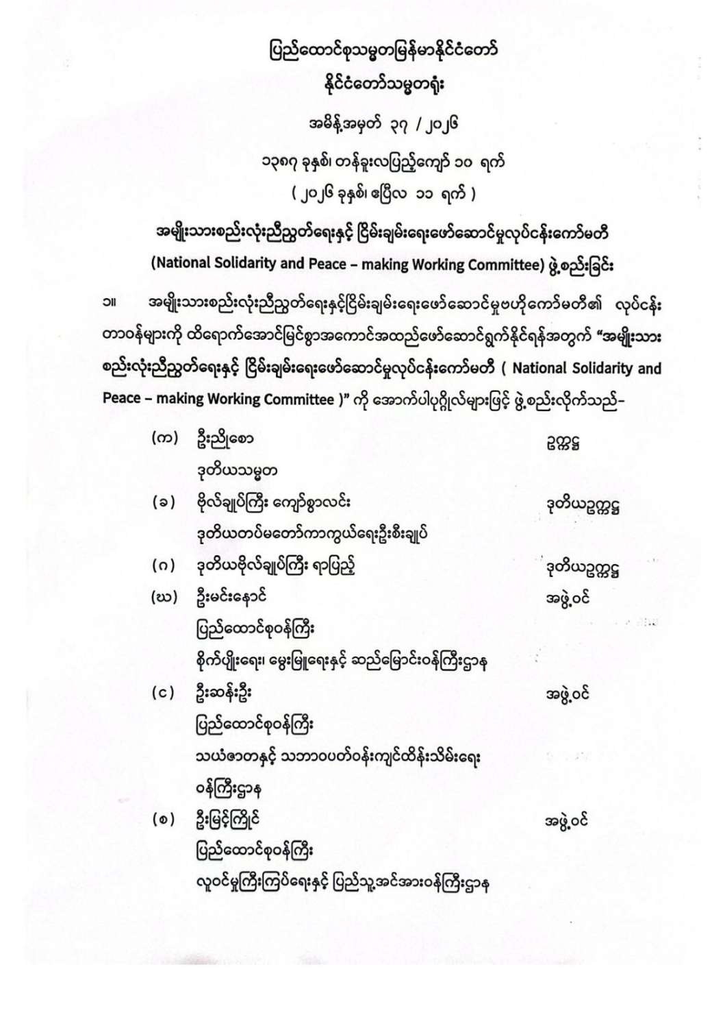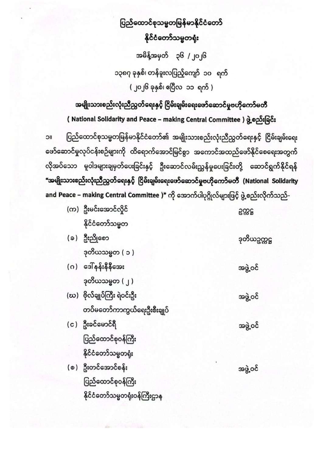 ပြည်ထောင်စုသမ္မတမြန်မာနိုင်ငံတော်၊ နိုင်ငံတော်သမ္မတရုံး အမိန့်အမှတ် (၃၆/၂၀၂၆)