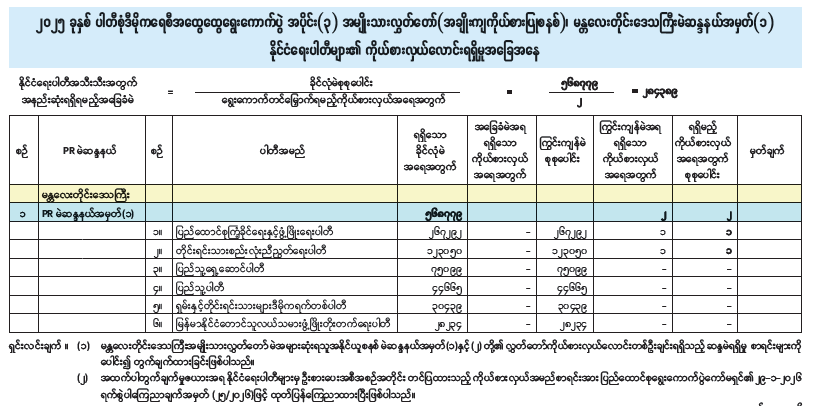၂၀၂၅ ခုနှစ် ပါတီစုံဒီမိုကရေစီအထွေထွေရွေးကောက်ပွဲ အပိုင်း(၃) အမျိုးသားလွှတ်တော်(အချိုးကျကိုယ်စားပြုစနစ်)၊ ကရင်ပြည်နယ်မဲဆန္ဒနယ်အမှတ်(၁) နိုင်ငံရေးပါတီများ၏ ကိုယ်စားလှယ်လောင်းရရှိမှုအခြေအနေ