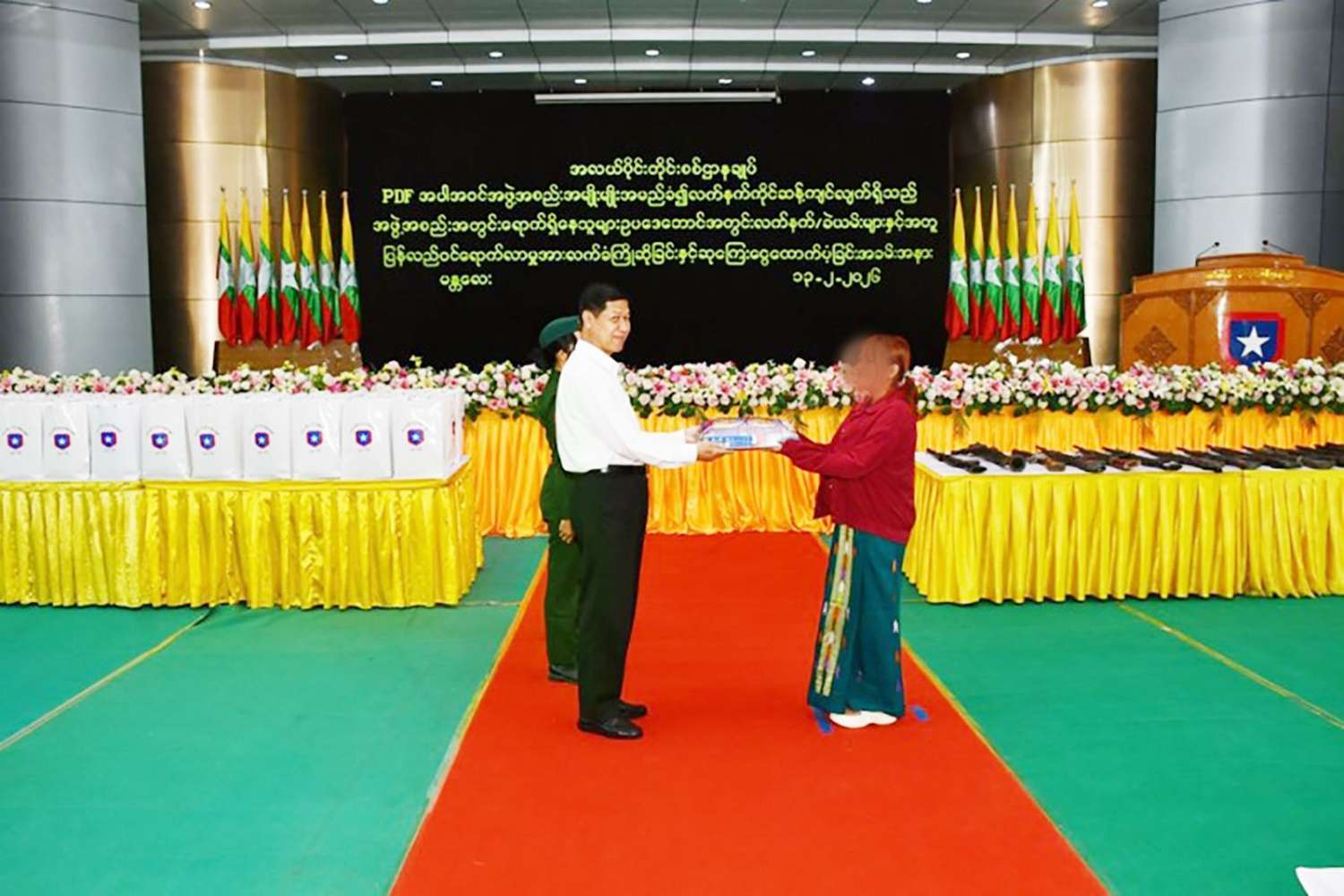 နိုင်ငံတော်အစိုးရသည် PDF အပါအဝင် အဖွဲ့အစည်းအမျိုးမျိုးအမည်ခံ၍ လက်နက်ကိုင်ဆန့်ကျင်လျက်ရှိသည့် အဖွဲ့အစည်းများအတွင်း ရောက်ရှိနေသူများအား ဥပဒေဘောင်အတွင်းသို့ ပြန်လည်ဝင်ရောက်ရန်ဖိတ်ခေါ်၍ ဥပဒေဘောင်အတွင်းသို့ ပြန်လည်ဝင်ရောက်လာကြသူများကိုလည်း လိုအပ်သည့်ကူညီပံ့ပိုးမှုများ ဆောင်ရွက်ပေးလျက်ရှိရာ နိုင်ငံတော်နှင့် တပ်မတော်၏ငြိမ်းချမ်းရေးလုပ်ငန်းစဉ်များကို နားလည်သဘောပေါက်လာသည့် PDF အပါအဝင် အဖွဲ့အစည်းအမျိုးမျိုးအမည်ခံ အမျိုးသား ၁၄၁ ဦးနှင့် အမျိုးသမီး ၉ ဦး၊ ပေါင်း ၁၅၀ ဦးတို့သည် လက်နက်၊ ခဲယမ်းများနှင့်အတူ ဥပဒေဘောင်အတွင်းသို့ ဝင်ရောက်လာကြပြီး တာဝန်ရှိသူများက ကြိုဆိုလက်ခံ၍ မိဘအုပ်ထိန်းသူများထံ ပြန်လည်လွှဲပြောင်းအပ်နှံပွဲကို ယနေ့တွင် မန္တလေးမြို့၊ အလယ်ပိုင်းတိုင်းစစ်ဌာနချုပ်၊ ရန်အောင်မြင်ခန်းမ၌ ကျင်းပပြုလုပ်သည်။