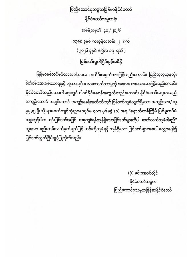 ၂၀၂၆ ခုနှစ် မြန်မာနှစ်သစ်ကူးအခါသမယမှာ မိဘပြည်သူများနှင့် တိုင်းရင်းသားညီအစ်ကို မောင်နှမများအားလုံး စိတ်၏ချမ်းသာခြင်း၊ ကိုယ်၏ကျန်းမာခြင်းတို့နဲ့ ပြည့်စုံကြပါစေကြောင်း ဆုမွန်ကောင်းတောင်းလျက် နှုတ်ခွန်းဆက်သအပ်ပါတယ်ရှင့်။
