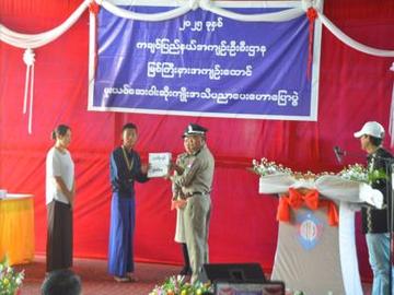 ဆက်လက်၍ ဆုရရှိသူများအား ကချင်ပြည်နယ်ဝန်ကြီးချုပ်နှင့် အစိုးရအဖွဲ့မှ ရွေးချယ် သတ်မှတ်ပြီး ကချင်ပြည်နယ်ဝန်ကြီးချုပ် ဦးခက်ထိန်နန်မှ ပထမဆုရရှိသူအား ဆုငွေကျပ် ငါးသိန်း၊ ကချင်ပြည်နယ်တရားလွှတ်တော်တရားသူကြီးချုပ် ဒေါ်အေးအေးမော်မှ ဒုတိယဆုရရှိသူအား ဆုငွေ ကျပ် သုံးသိန်း၊ ငြိမ်းချမ်းရေးအကျိုးတော်ဆောင်(PCG)သီရိပျံချီ ဦးလမိုင်ဂွမ်ဂျာမှ တတိယဆုရရှိသူအား ဆုငွေကျပ် နှစ်သိန်း၊ ကချင်ပြည်နယ်ဦးစီးမှူး ညွှန်ကြားရေးမှူး ဦးကျော်စိုးမှ နှစ်သိမ့်ဆုရရှိသူ နှစ်ဦးအား ငွေကျပ် တစ်သိန်းစီ အသီသီးဆုများ ပေးအပ်ချီးမြှင့်ခဲ့ကြောင်း သတင်းရရှိပါသည်။