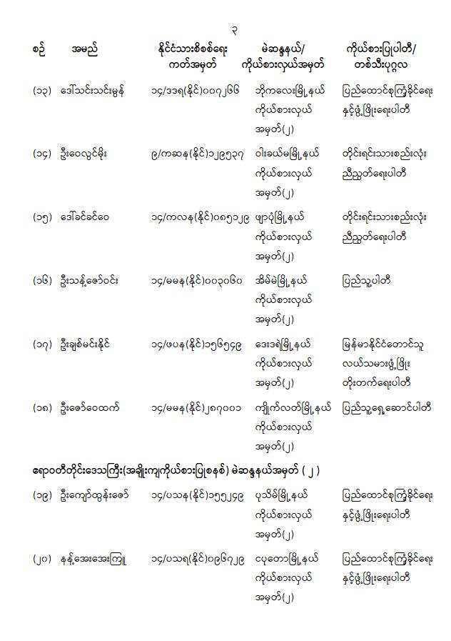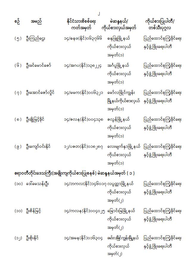 တိုင်းဒေသကြီးလွှတ်တော် သို့မဟုတ် ပြည်နယ်လွှတ်တော်ကိုယ်စားလှယ်အဖြစ် ရွေးကောက်တင်မြှောက်ခံရသူများ အမည်စာရင်းကြေညာခြင်း