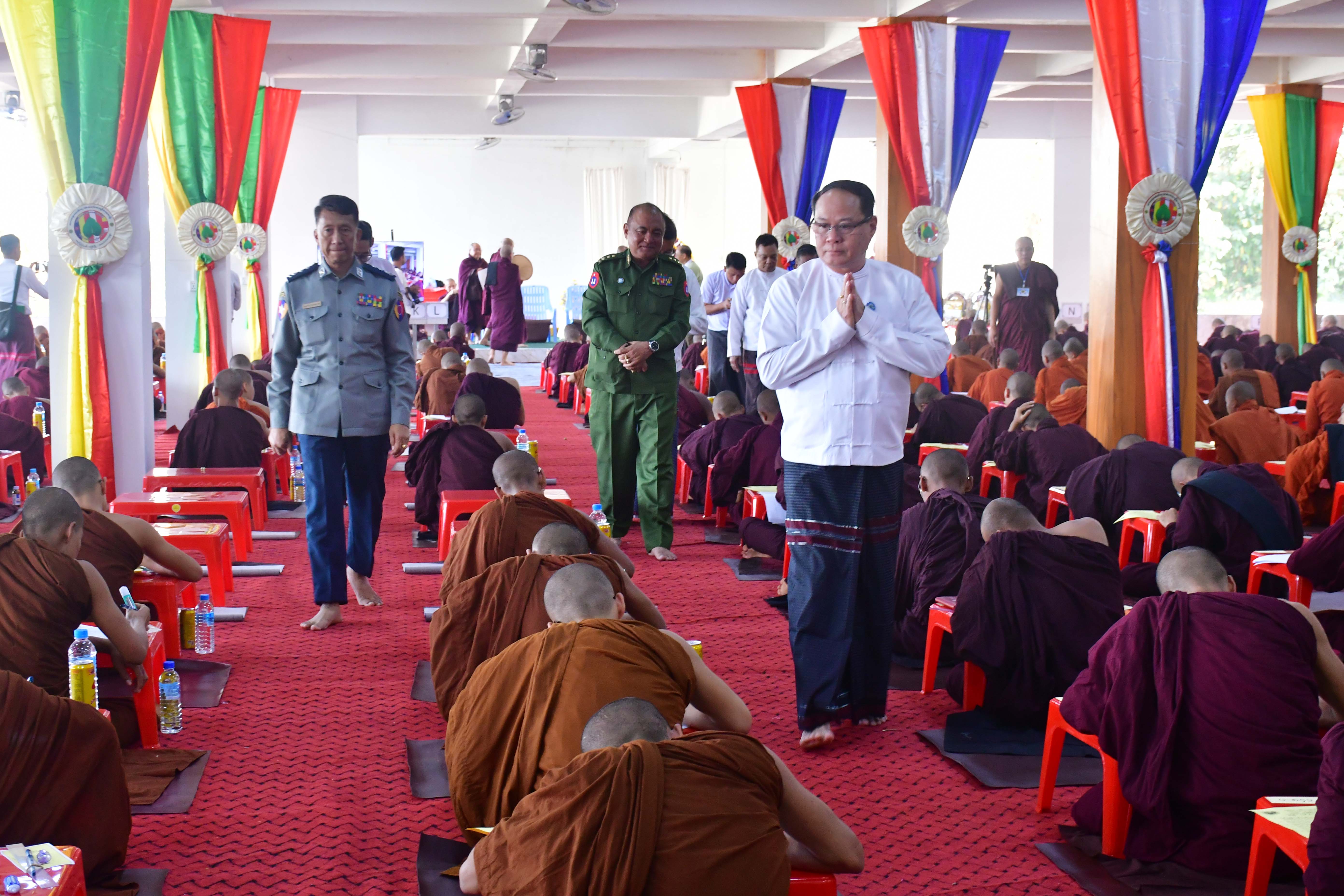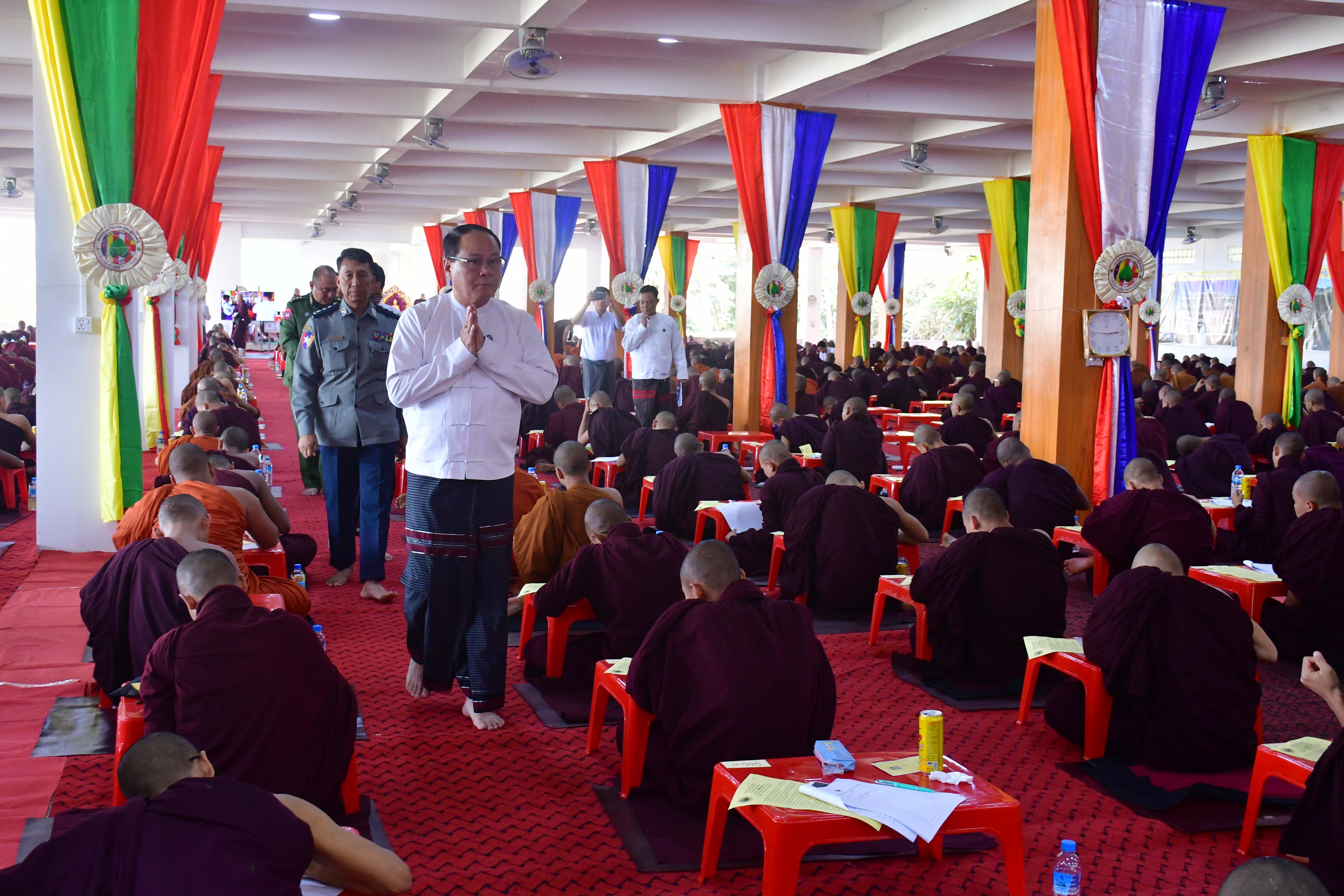 ဒဿမအကြိမ်မြောက် မြန်မာနိုင်ငံလုံးဆိုင်ရာသာသနမာမကသာသနာလင်္ကာရသာမဏေကျော်စာမေးပွဲဖြေဆိုနေသည့် ရဟန်းသံဃာများနှင့်ရှင်သာမဏေများအား ပြည်နယ်ဝန်ကြီးချုပ်သွားရောက်ဖူးမြော်ကြည်ညို