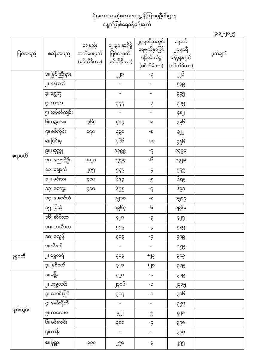 နေ့စဉ်မြစ်ရေခန့်မှန်းချက် ၄-၁၂-၂၀၂၅ ရက်နေ့ ၁၄:၀၀ နာရီအချိန်ထုတ်ပြန်ချက်