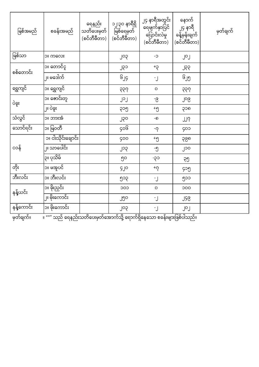နေ့စဉ်မြစ်ရေခန့်မှန်းချက် ၂၂-၂-၂၀၂၆ ရက်နေ့ ၁၄:၀၀ နာရီအချိန်ထုတ်ပြန်ချက်