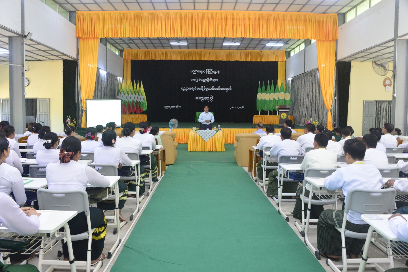 ဦးစွာ ဒုတိယဝန်ကြီးက အမှာစကားပြောကြားရာတွင် သင်တန်းသား သင်တန်းသူ ဦးစီး အရာရှိများသည် ပညာရေးလုပ်ငန်းများ အောင်မြင်အောင် အကောင်အထည်ဖော်ဆောင်ရွက်ရာတွင် လက်တွေ့အကောင်အထည်ဖော်ဆောင်ရွက်နေကြသည့် အောက်ခြေအဆင့်နှင့် ချိတ်ဆက်ပေးကြရသူများဖြစ်၍ အလွန်အရေးကြီးပါကြောင်း၊ သင်တန်းတွင် မိမိဝန်ကြီးဌာန၏ မူဝါဒများနှင့် သင်ကြားပို့ချပေးသည့် စီမံ၊ ဘဏ္ဍာ၊ ပညာ၊ မူဝါဒ၊ စီမံကိန်းနှင့် ကွန်ပျူတာ၊ အိုင်စီတီစသည့် အသိပညာများကို သေသေချာချာ လေ့လာမှတ်သားကြရန်နှင့် မိမိတို့လုပ်ငန်းတွင် ပြန်လည် အသုံးချဆောင်ရွက်ကြစေလိုပါကြောင်း၊ ပညာရေးဒီဂရီကောလိပ်အချို့ကို တက္ကသိုလ် အဆင့်မြှင့် တင်ရန် စီစဉ်ဆောင်ရွက်နေပါကြောင်း၊ အဓိကအားဖြင့် အခြေခံပညာကျောင်းများမှ ဆရာ ဆရာမများအနေဖြင့် သတ်မှတ်အရည်အချင်းကိုက်ညီသူများသည် ပညာဆက်လက်ဆည်းပူး သင်ယူခွင့်များ ရရှိလာကြမည်ဖြစ်ပြီး ပညာရေးဘွဲ့၊ မဟာဘွဲ့များအထိ အဆင့်ဆင့် ရရှိလျက် ရာထူး၊ လစာ၊ အခွင့်အလမ်းများ တိုးမြှင့်ရရှိလာမည့် အခွင့်အလမ်းကောင်းများ ပေါ်ထွန်းလာမည် ဖြစ်ကြောင်း၊ အရည်အချင်းရှိသည့် ဆရာ ဆရာမများဖြစ်စေရေး အလေးထား ဆောင်ရွက်သွားကြရမည်ဖြစ်ကြောင်း၊ လာမည့်ပညာသင်နှစ်တွင် အခြေခံပညာအလယ်တန်းအဆင့်၌ စက်မှု၊ စိုက်ပျိုး၊ မွေးမြူရေးဆိုင်ရာ အခြေခံဗဟုသုတများသင်ကြားပေးရန် စီစဉ်နေကြောင်း၊ ထိုသို့ သင်ကြားပေးခြင်းဖြင့် နိုင်ငံတော်အတွက်လိုအပ်သည့် လူသားအရင်းအမြစ်များ များစွာ ရရှိလာမည်ဖြစ်ကြောင်းစသည်ဖြင့် ပြောကြားသည်။
