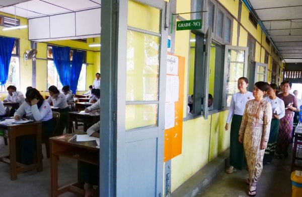 ကြည့်ရှုစဉ် တာဝန်ကျစာမေးပွဲကြီးကြပ်ရေးမှူးနှင့် လက်ထောက်ကြီးကြပ်ရေးမှူး ဆရာ ဆရာမများက စာဖြေသူများလိုက်နာရန် စာမေးပွဲစည်းမျဉ်းစည်းကမ်းများကို ဖတ်ကြားရှင်းပြခြင်း၊ ခုံအမှတ် မှန်ကန်မှုစစ်ဆေးခြင်း၊ မေးခွန်းစာမျက်နှာစုံလင်မှု စစ်ဆေးခြင်း၊ တာဝန်ကျစာမေးပွဲ ကြီးကြပ်ရေးမှူးနှင့် လက်ထောက်ကြီးကြပ်ရေးမှူး ဆရာ ဆရာမများက စာမေးပွဲစည်းမျဉ်း စည်းကမ်းနှင့်အညီ စနစ်တကျဆောင်ရွက်နေမှုများနှင့် ကျောင်းသား ကျောင်းသူများ စိတ်အေး ချမ်းသာစွာ ဖြေဆိုနေမှုတို့ကို ကြည့်ရှုအားပေးသည်။