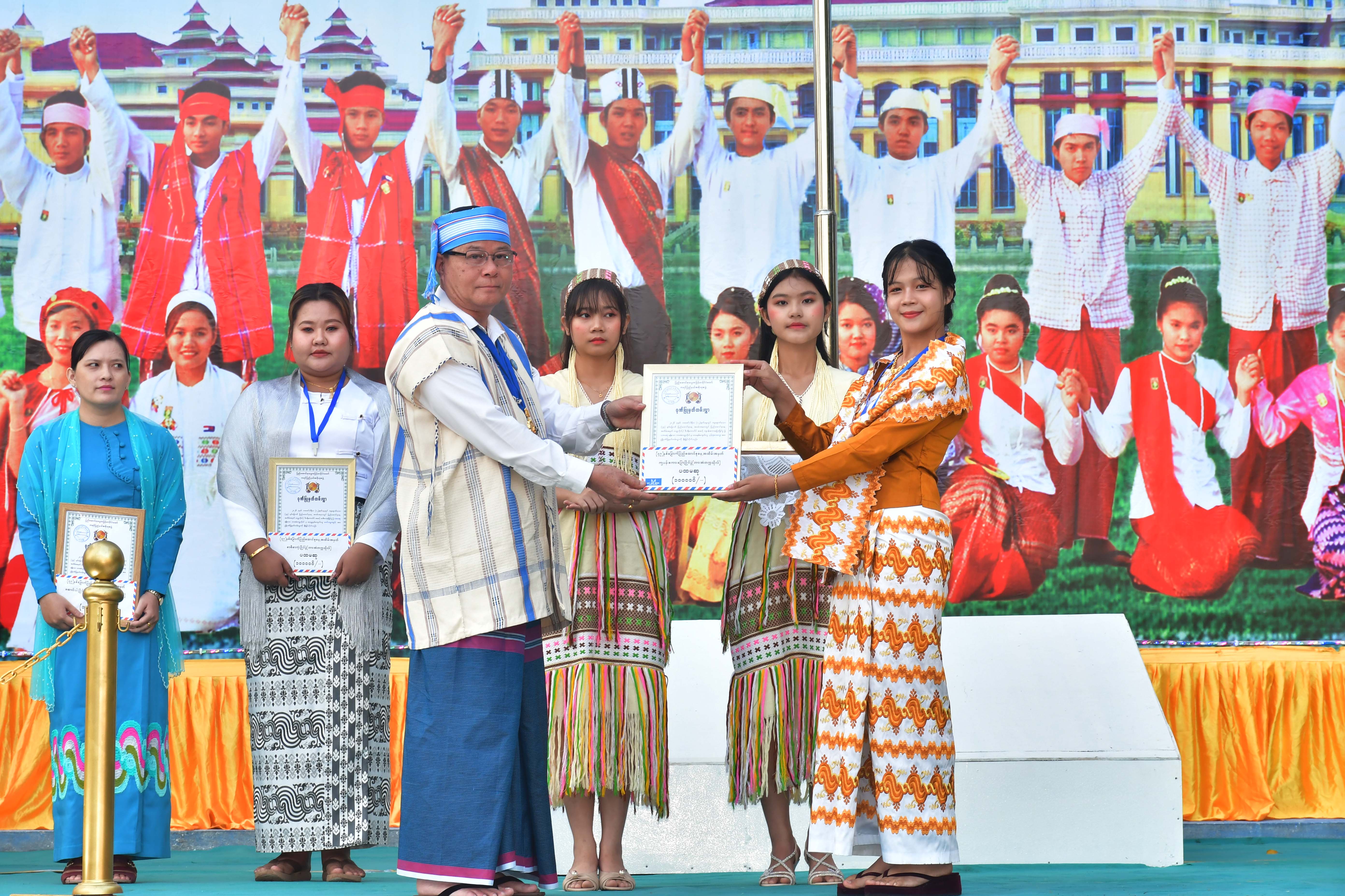 ယင်းနောက် ပြည်ထောင်စုသမ္မတမြန်မာနိုင်ငံတော် ယာယီသမ္မတ နိုင်ငံတော်လုံခြုံရေးနှင့်အေးချမ်းသာယာရေး ကော်မရှင်ဥက္ကဋ္ဌ ဗိုလ်ချုပ်မှူးကြီး သတိုးမဟာသရေစည်သူ သတိုးသီရိသုဓမ္မမင်းအောင်လှိုင်ထံမှ ၂၀၂၆ ခုနှစ် (၇၉)နှစ် မြောက် ပြည်ထောင်စုနေ့အခမ်းအနားသို့ ပေးပို့သည့် သဝဏ်လွှာကို ကရင်ပြည်နယ်ဝန်ကြီးချုပ် သီရိပျံချီဦးစောမြင့်ဦးက ဖတ်ကြားပြီး ပြည်နယ်ဝန်ကြီးချုပ်၊ အရှေ့တောင်တိုင်းစစ်ဌာနချုပ်ဒုတိယတိုင်းမှူး၊ ပြည်နယ်တရားလွှတ်တော်တရား သူကြီးချုပ်၊ ပြည်နယ်အစိုးရအဖွဲ့ဝင်များက ဂုဏ်ပြုတပ်ဖွဲ့နှင့်အလံတင်တပ်ဖွဲ့တို့အားဂုဏ်ပြုဆု၊ (၇၉)နှစ်မြောက် ပြည် ထောင်စုနေ့အထိမ်းအမှတ် တက္ကသိုလ်၊ ဒီဂရီကောလိပ်၊ သိပ္ပံအဆင့်နှင့် အခြေခံပညာအဆင့် စာစီစာကုံး၊ ကျပန်းစကား ပြော၊ ကဗျာ၊ ဆောင်းပါး၊ ပန်းချီ ပြိုင်ပွဲများတွင် ဆုရရှိသူများအားဂုဏ်ပြုဆု စုစုပေါင်း ၉၁ ဆုကို ချီးမြှင့်ပေးအပ်ခဲ့ကြ သည်။