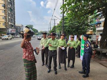 ရန်ကုန်တိုင်းဒေသကြီး၊ အလုံမြို့နယ်၊ ဆင်မင်းရပ်ကွက်၌ ရွေးကောက်ပွဲတွင် မဲဆန္ဒရှင်ပြည်သူများ အားလုံး ပါဝင်မဲပေးနိုင်ရေးအတွက် လက်ကမ်းစာစောင်များ ဖြန့်ဝေ