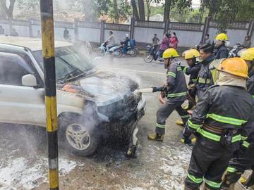 ၂၀၂၅ ခုနှစ်၊ ဒီဇင်ဘာ ၁၈ ရက် နံနက် ၁၁ နာရီ ၅ မိနစ်ခန့်က ရှမ်းပြည်နယ်၊ ကျိုင်းတုံမြို့နယ်၊ ရပ်ကွက်(၂)၊ တာချီလိတ်-ကျိုင်းတုံပြည်ထောင်စုလမ်းမကြီး၊ မိုင်တိုင်အမှတ် ၃၉၄ မိုင် ၄ ဖာလုံနှင့် ၅ ဖာလုံ ကြား၌ တာချီလိတ်မှ ကျိုင်းတုံသို့ ယာဉ်မောင်း ယောဟန်(၃၁)နှစ် မောင်းနှင်လာသော ယာဉ်အမှတ် SHN-7၊ 9M-XXXX MITSU BISHI PAJERO-IO အမျိုးအစား အဖြူရောင် မော်တော်ယာဉ်သည် အင်ဂျင်ခန်းအတွင်း ဝိုင်ယာရှော့ဖြစ်ရာမှ အပူလွန်ကဲပြီး မီးစတင်လောင်ကျွမ်းမှုဖြစ်ပွားကြောင်း သ တင်းရရှိသဖြင့် ကျိုင်းတုံ ခရိုင်၊ မြို့နယ်မီးသတ်စခန်းများမှ မီးသတ်တပ်ဖွဲ့ဝင်များသည် မီးသတ်ယာဉ် နှစ်စီးဖြင့် မီးငြှိမ်းသတ်ရေး လုပ်ငန်းများ သွားရောက်ဆောင်ရွက်ခဲ့ရာ နံနက် ၁၁ နာရီ ၁၁ မိနစ်တွင် မီးငြိမ်းခဲ့ပါသည်။