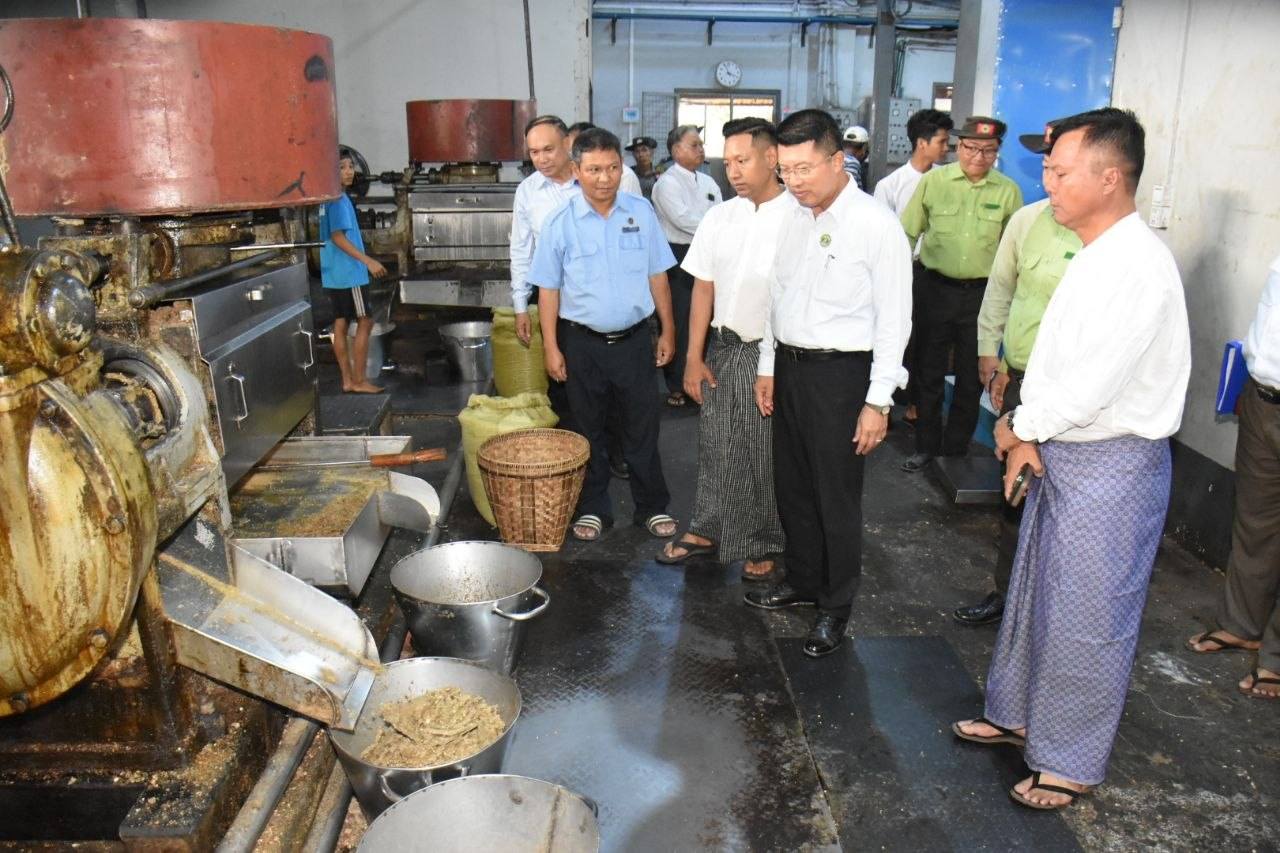 ဧရာဝတီတိုင်းဒေသကြီးဝန်ကြီးချုပ် ဦးတင်မောင်ဝင်း ဟင်္သာတမြို့၊ “နိုင်”ဆီစက်သို့ သွားရောက်၍ မြေပဲ၊ ပဲပုပ် ဆီကြိတ်ခွဲထုတ်လုပ်မှုအခြေအနေများအား ကြည့်ရှုအားပေး