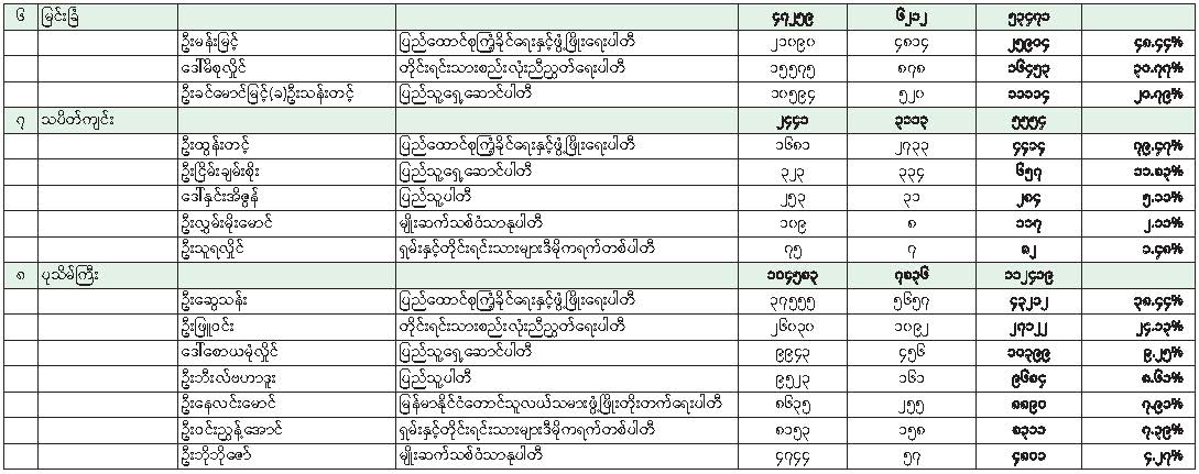 ၂၀၂၅ ခုနှစ် ပါတီစုံဒီမိုကရေစီအထွေထွေရွေးကောက်ပွဲ အပိုင်း(၃) တိုင်းဒေသကြီးလွှတ်တော် သို့မဟုတ် ပြည်နယ်လွှတ်တော်ကိုယ်စားလှယ်လောင်းတစ်ဦးချင်း ဆန္ဒမဲရရှိမှုအခြေအနေ