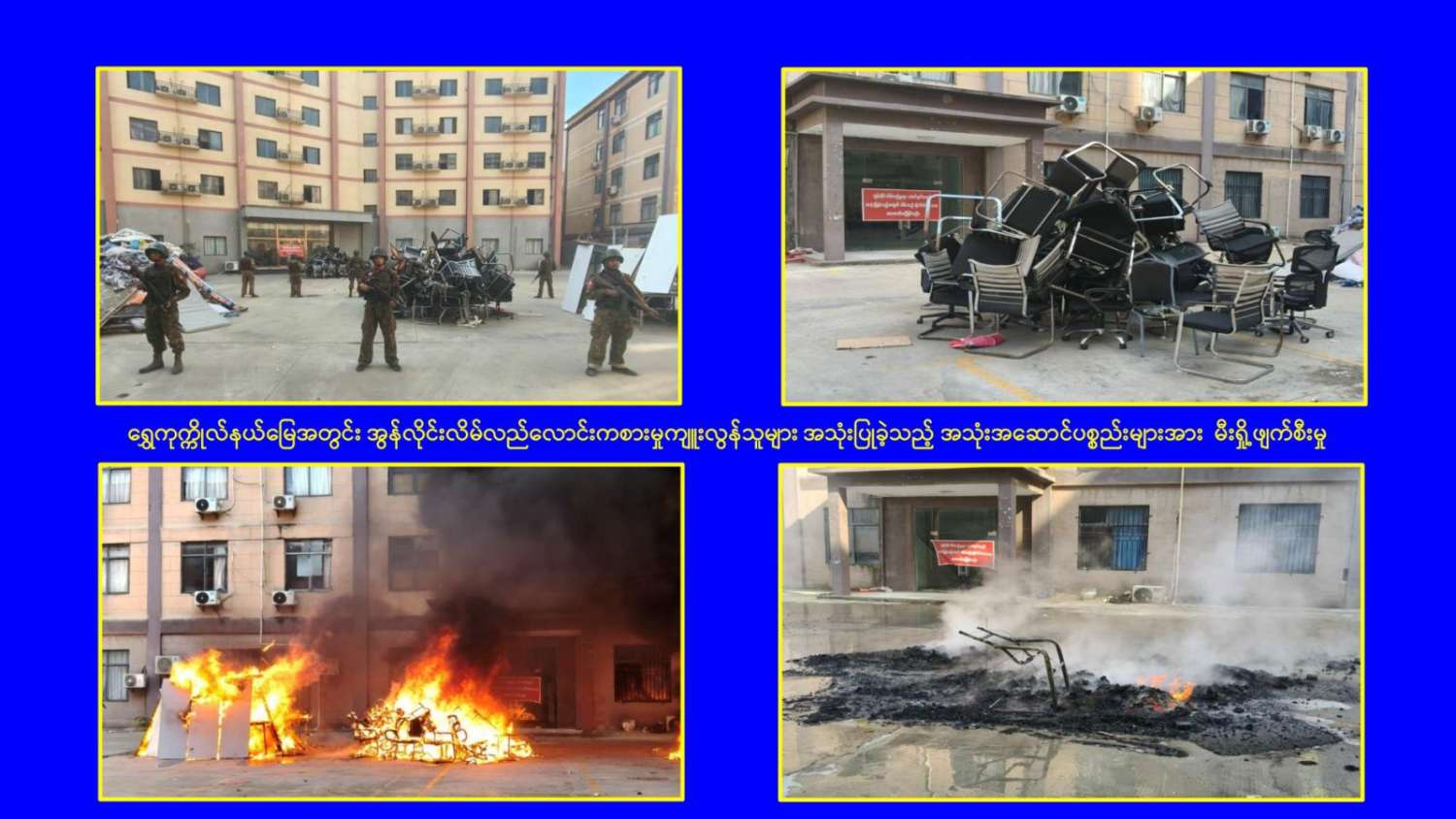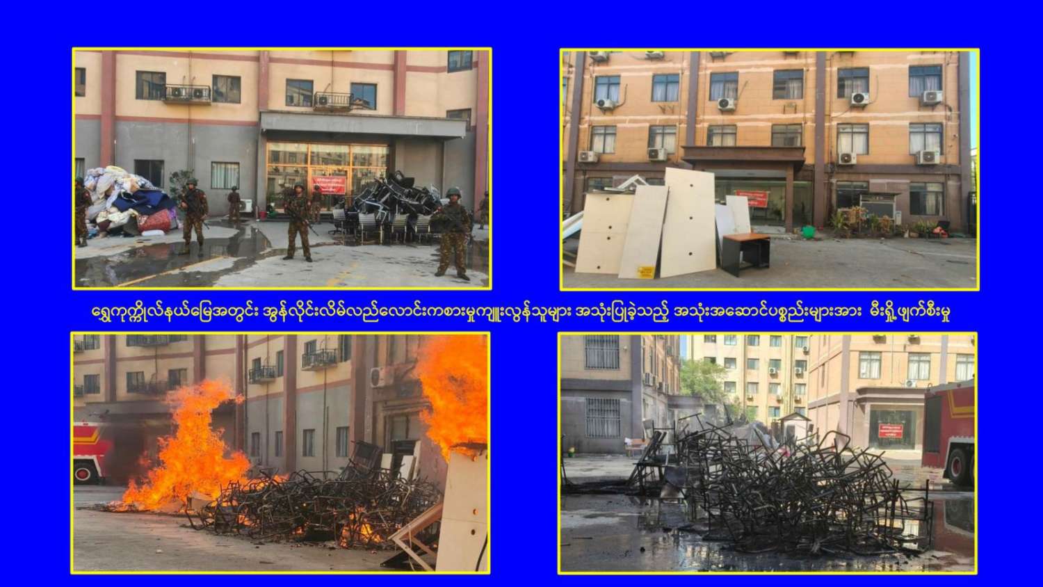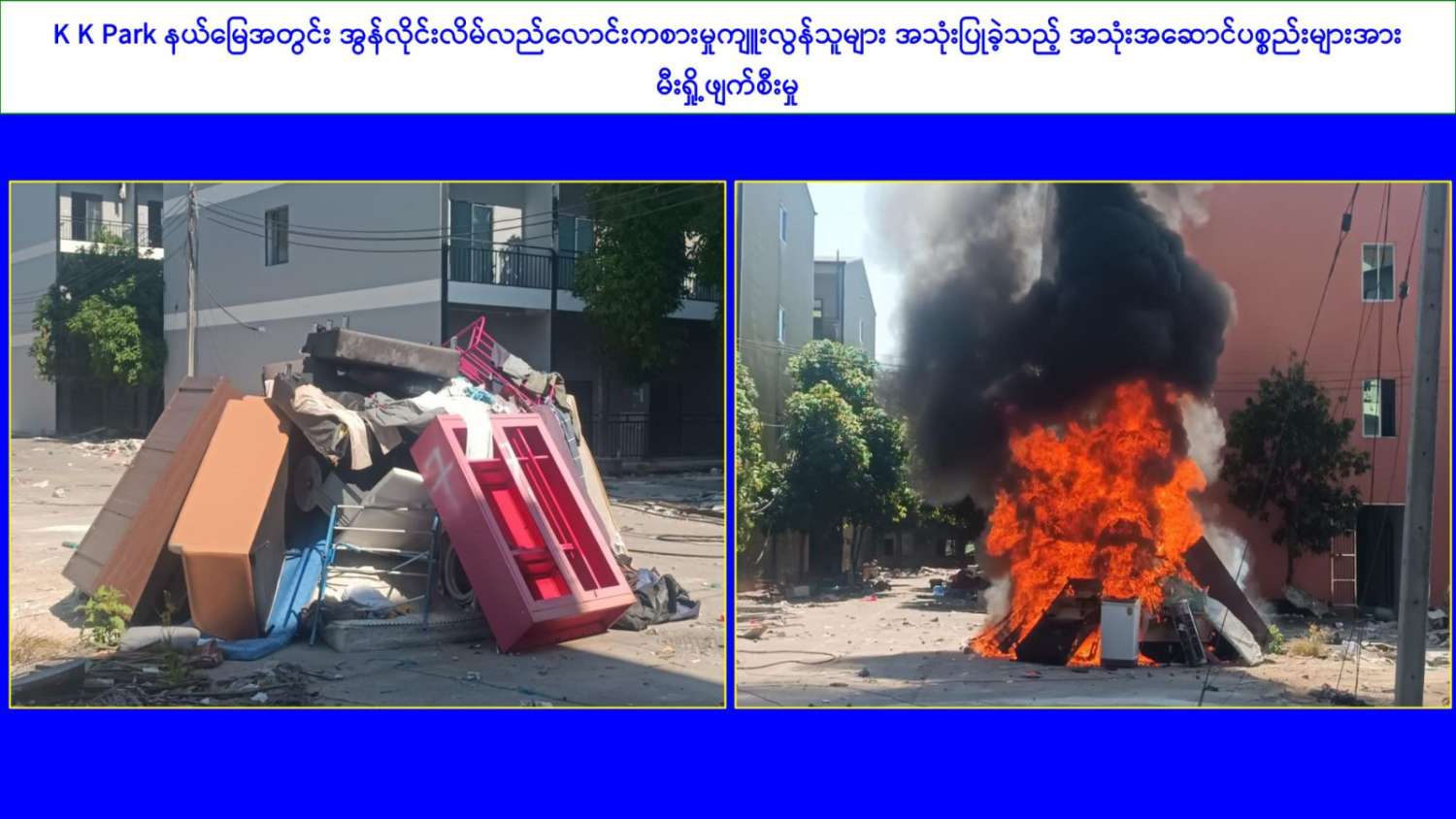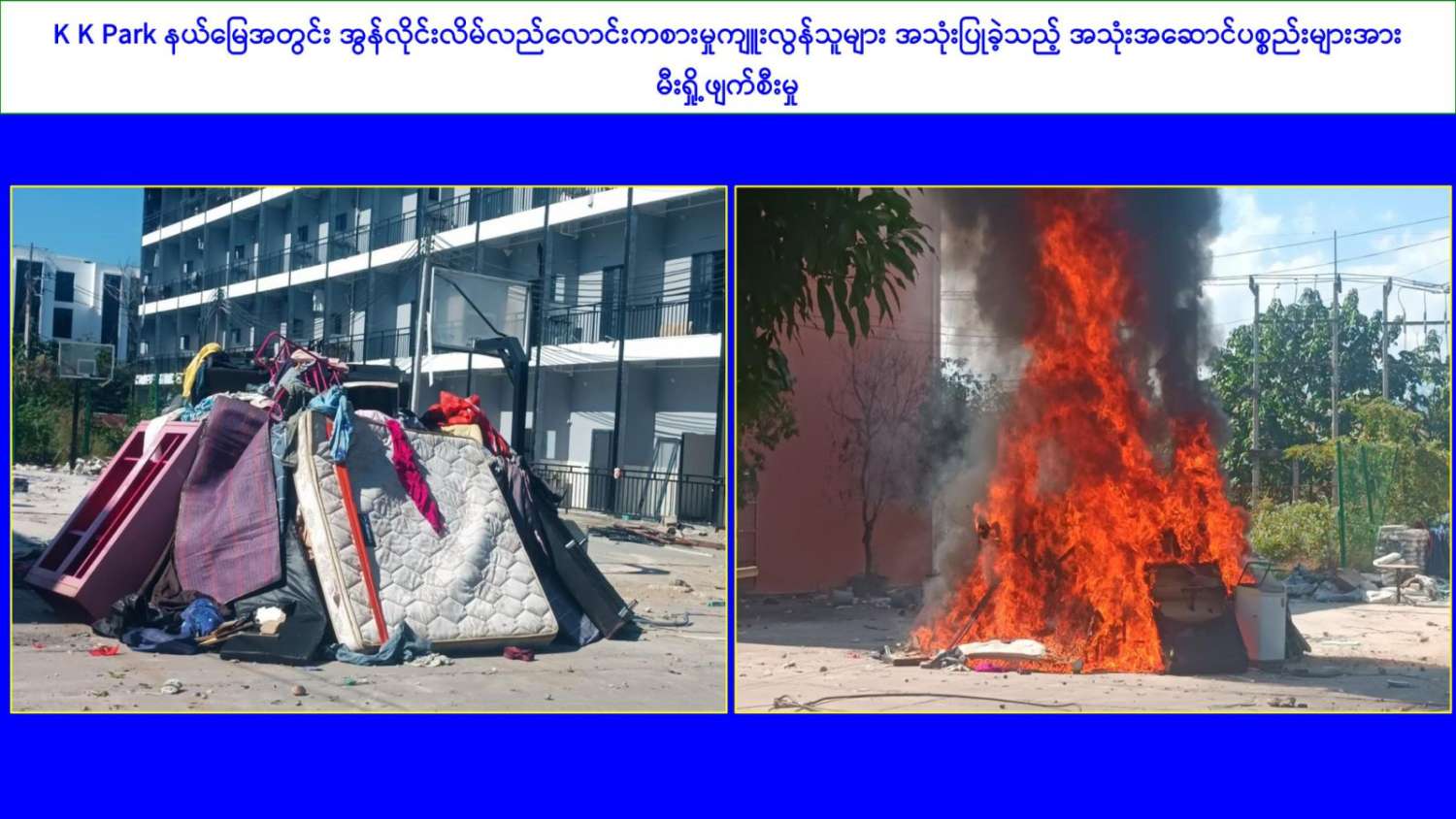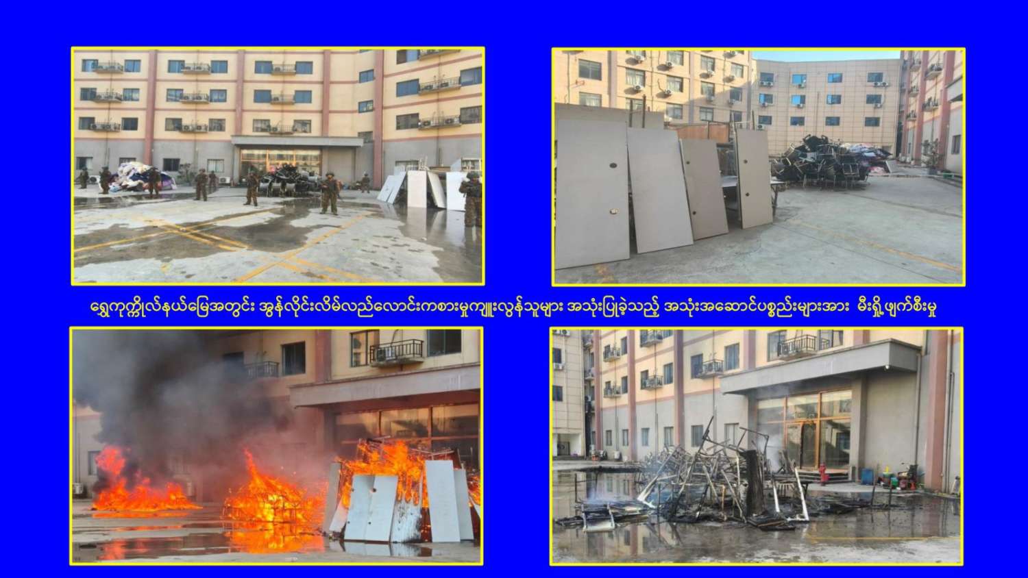 ၎င်းအပြင် KK park နှင့်ရွှေကုက္ကိုလ်နယ်မြေရှိ အွန်လိုင်းလိမ်လည်လောင်း ကစားမှုကျူးလွန်ရာတွင် အသုံးပြုခဲ့သည့်ပစ္စည်းများအား ထပ်မံအသုံးပြုမှုမရှိစေရေးအတွက် ယနေ့တွင်လည်း စနစ်တကျမီးရှို့ဖျက်ဆီးခဲ့ကြောင်းနှင့် နိုင်ငံတော်အစိုးရအနေဖြင့် အွန်လိုင်းလိမ်လည် လောင်းကစားမှုကျူးလွန်မှုများကို အမျိုးသားရေးတာဝန်တစ်ရပ် အဖြစ်ခံယူကာ မြန်မာနိုင်ငံအတွင်း လုံးဝအခြေမပြုနိုင်ရေး ပြည်တွင်းအင်အားစုများအပြင် အိမ်နီးချင်းနိုင်ငံအစိုးရများနှင့်လည်း ပေါင်းစပ်ညှိနှိုင်း၍ ဆက်လက်ဆောင်ရွက်သွားမည်ဖြစ်ကြောင်း သတင်းရရှိသည်။