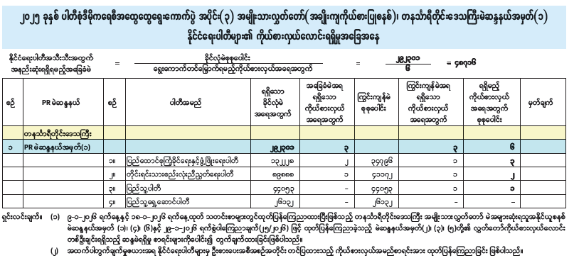 ၂၀၂၅ ခုနှစ် ပါတီစုံဒီမိုကရေစီအထွေထွေရွေးကောက်ပွဲ အပိုင်း(၃) အမျိုးသားလွှတ်တော်(အချိုးကျကိုယ်စားပြုစနစ်)၊ ကရင်ပြည်နယ်မဲဆန္ဒနယ်အမှတ်(၁) နိုင်ငံရေးပါတီများ၏ ကိုယ်စားလှယ်လောင်းရရှိမှုအခြေအနေ