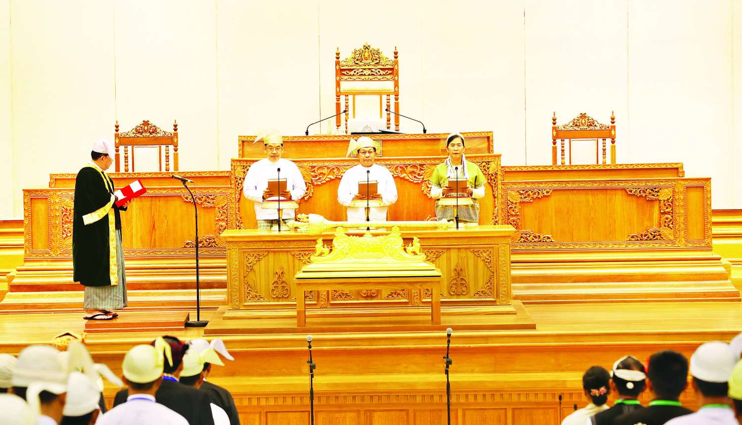 တတိယအကြိမ် ပြည်ထောင်စုလွှတ်တော် ပထမပုံမှန်အစည်းအဝေးဆဋ္ဌမနေ့ကို ယနေ့နံနက် ၁၀ နာရီတွင် နေပြည်တော်ရှိ လွှတ်တော်အဆောက်အအုံ ပြည်ထောင်စုလွှတ်တော်အစည်းအဝေးခန်းမ၌ ကျင်းပရာ တတိယအကြိမ် ပြည်ထောင်စုလွှတ်တော် ပထမပုံမှန်အစည်းအဝေး ဆောင်ရွက်ချက်များအပါအဝင် လွှတ်တော်လုပ်ငန်းဆိုင်ရာများ ရှင်းလင်းတင်ပြခြင်း၊ နိုင်ငံတော်သမ္မတနှင့် ဒုတိယသမ္မတများအဖြစ် ရွေးချယ်တင်မြှောက်ခံရသူများ ကတိသစ္စာပြုခြင်း၊ ပြည်ထောင်စုအဆင့်အဖွဲ့အစည်းဝင်များအဖြစ် ခန့်အပ်တာဝန်ပေးရန် သဘောတူထားသည့်ပုဂ္ဂိုလ်များ ကတိသစ္စာပြုခြင်းနှင့် နိုင်ငံတော်သမ္မတ မိန့်ခွန်းပြောကြားခြင်းတို့ကို ဆောင်ရွက်ကြသည်။