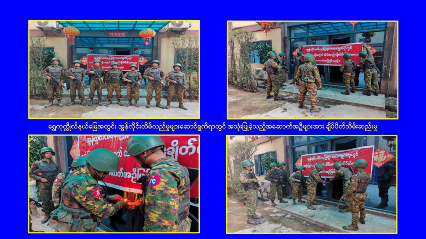 မြန်မာနိုင်ငံအစိုးရအနေဖြင့် အွန်လိုင်းလိမ်လည်လောင်းကစားမှုများ အများဆုံး အခြေချလုပ်ကိုင်လျက်ရှိကြသည့် ရွှေကုက္ကိုလ်နယ်မြေနှင့် KK Park နယ်မြေများရှိတရားမဝင် အဆောက်အအုံများအတွင်း ဝင်ရောက်ရှင်းလင်းခြင်း၊ အွန်လိုင်းလိမ်လည် လောင်းကစားမှုလုပ်ငန်းစဉ်များတွင် အသုံးပြုခဲ့သည့် သိမ်းဆည်းရမိပစ္စည်းများနှင့် တရားမဝင် အဆောက်အအုံများအား စနစ်တကျဖြိုချဖျက်ဆီးခြင်းများကို လုံခြုံရေးတပ်ဖွဲ့ဝင်များ၊ အုပ်ချုပ်ရေးအဖွဲ့အစည်းများနှင့် ဒေသတွင်းတာဝန်ရှိသူများအပါအဝင် အဖွဲ့စုံပါဝင်သည့် ပူးပေါင်းအဖွဲ့ဖြင့် ဆောင်ရွက်လျက်ရှိသည်။