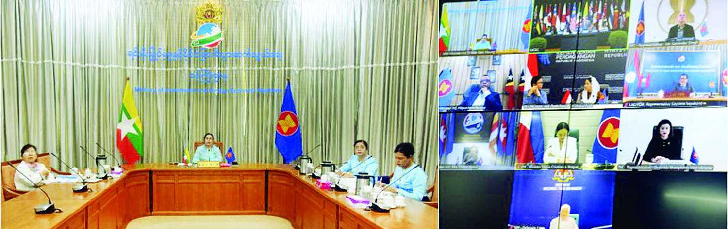 အာဆီယံနှင့် ပစိဖိတ်ဖြတ်ကျော် မိတ်ဖက်ဆက်ဆံမှု ဘက်စုံတိုးတက်ရေးသဘောတူ စာချုပ်ဝင်နိုင်ငံများအကြား ကုန်သွယ်မှုနှင့်ရင်းနှီးမြှုပ်နှံမှုဆိုင်ရာဆွေးနွေးပွဲကို ယနေ့နံနက်ပိုင်းတွင် ဗီဒီယိုကွန်ဖရင့်ဖြင့်ကျင်းပရာ မြန်မာနိုင်ငံ၏ အာဆီယံစီးပွားရေးဝန်ကြီး ရင်းနှီးမြှုပ်နှံမှုနှင့် နိုင်ငံခြားစီးပွားဆက်သွယ်ရေးဝန်ကြီးဌာန ပြည်ထောင်စုဝန်ကြီး ဒေါက်တာဝါဝါမောင် ဦးဆောင်သည့် ကိုယ်စားလှယ်အဖွဲ့ တက်ရောက်ဆွေးနွေးသည်။