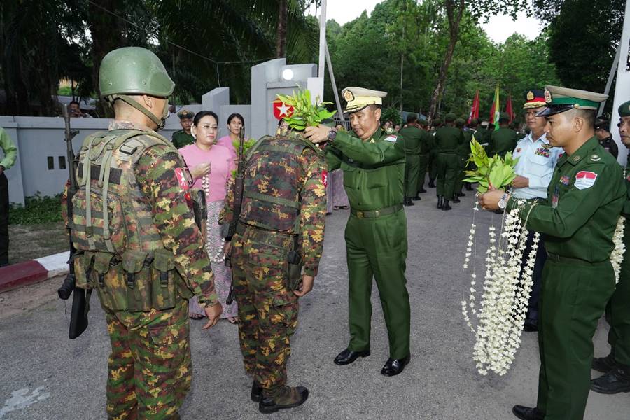 နိုင်ငံတော်တည်ငြိမ်ရေးနှင့် နယ်မြေအေးချမ်းသာယာရေးအတွက် ကရင်ပြည်နယ်၊ ကော့ကရိတ်မြို့နယ် ဒေသတစ်ဝိုက် နယ်မြေလုံခြုံရေးတာဝန်များကိုထမ်းဆောင်၍ ပြန်လည်ရောက်ရှိလာသော ရှေ့တန်းပြန် နိုင်ငံ့သားကောင်း တပ်မတော်သားများအား ဂုဏ်ပြုကြိုဆိုခြင်းကို ယနေ့ညနေပိုင်းတွင် တနင်္သာရီတိုင်းဒေသကြီး၊ မြိတ်မြို့နယ်ရှိ နယ်မြေခံတပ်ရင်း၌ပြုလုပ်ရာ ကမ်းရိုးတန်းဒေသတိုင်းစစ်ဌာနချုပ်တိုင်းမှူး ဗိုလ်ချုပ် ကျော်ကျော်ဟန်နှင့် တာဝန်ရှိသူများ၊ မြန်မာနိုင်ငံရဲတပ်ဖွဲ့ဝင်များ၊ မြန်မာနိုင်ငံစစ်မှုထမ်းဟောင်းအဖွဲ့ဝင်များ၊ ဌာနဆိုင်ရာတာဝန်ရှိသူများနှင့် ဒေသခံပြည်သူများပါဝင်တက်ရောက် ဂုဏ်ပြုကြိုဆိုကြသည်။