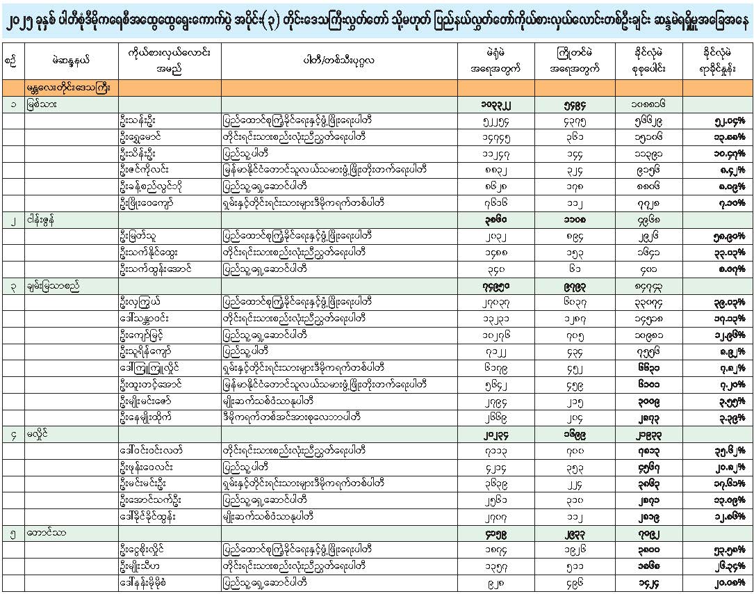 ၂၀၂၅ ခုနှစ် ပါတီစုံဒီမိုကရေစီအထွေထွေရွေးကောက်ပွဲ (အပိုင်း ၃) တိုင်းဒေသကြီးလွှတ်တော် သို့မဟုတ် ပြည်နယ်လွှတ်တော် ကိုယ်စားလှယ်လောင်းတစ်ဦးချင်း ဆန္ဒမဲရရှိမှုအခြေအနေ