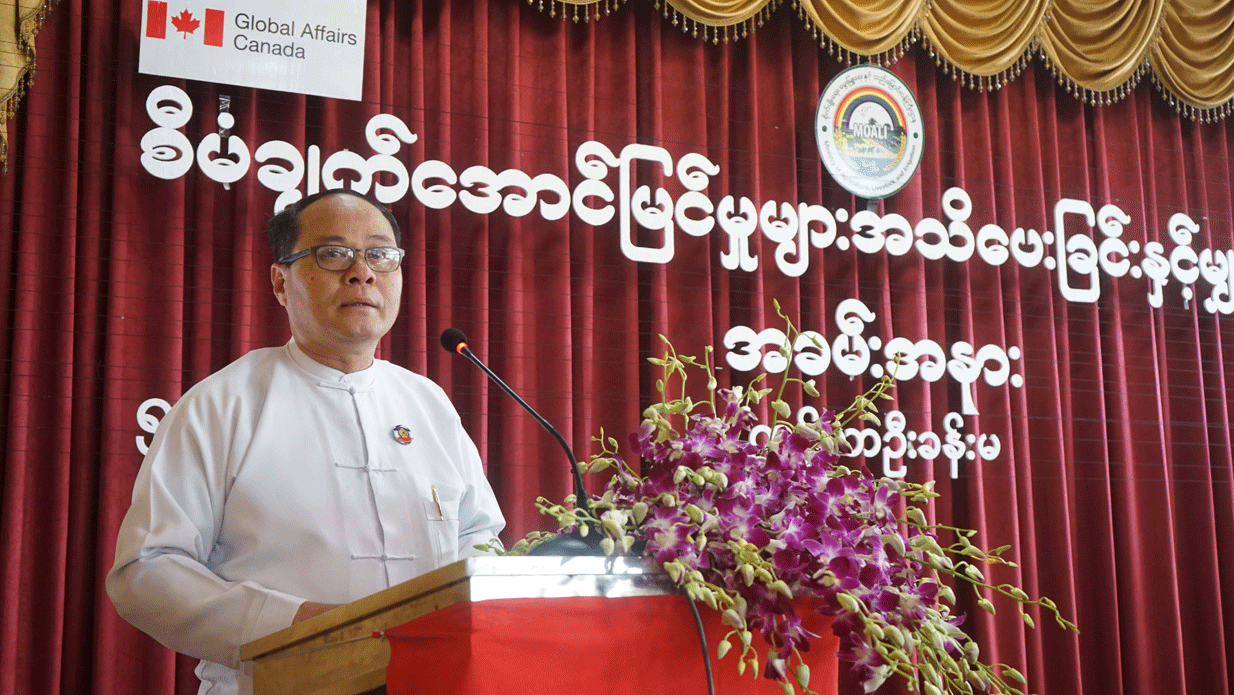 အခမ်းအနားတွင် ကရင်ပြည်နယ်အစိုးရအဖွဲ့၊ စိုက်ပျိုးရေး၊မွေးမြူရေးနှင့်ဆည်မြောင်းဝန်ကြီးဦးစောမြင့်ဦးက အဖွင့်အမှာစကားပြောကြားပြီး Heather McBride, First Secretary, Embassy of Canada နှင့် Jennifer King, Senior Project Manager, Global Programs, MEDA တို့က ကြိုဆိုနှုတ်ခွန်းဆက်စကားပြောကြားသည်။