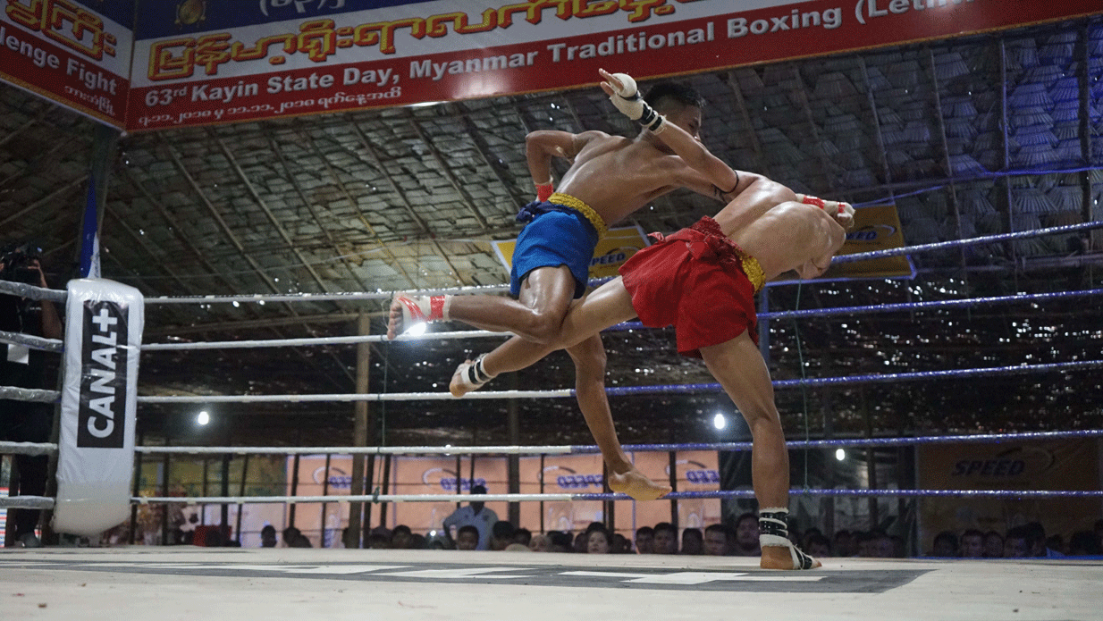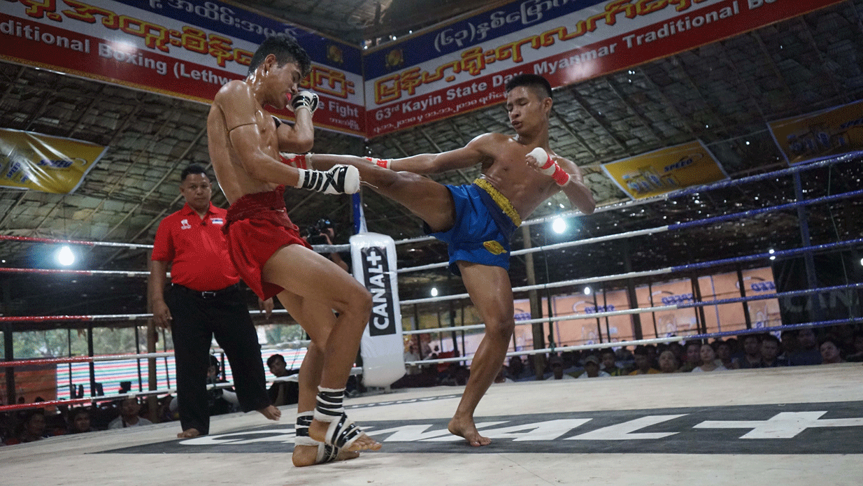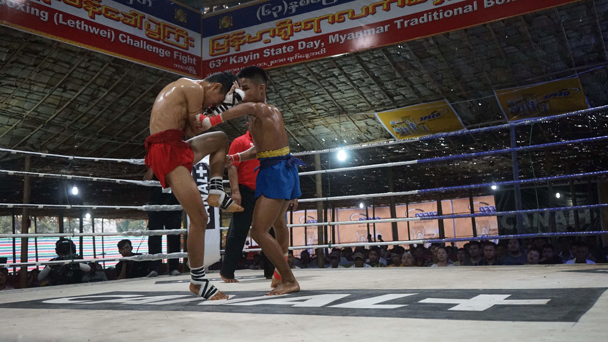 (၆၃)နှစ်မြောက်ကရင်ပြည်နယ်နေ့အထိမ်းအမှတ်မြန်မာ့ရိုးရာလက်ဝှေ့ပြိုင်ပွဲပထမနေ့အကြိတ်အနယ်ယှဉ်ပြိုင်ထိုးသတ်