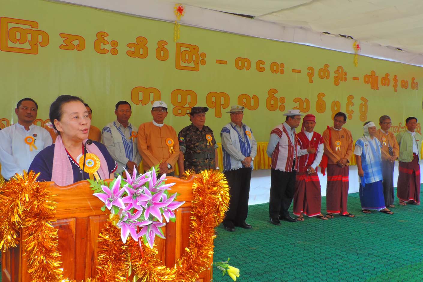 လမ်းဖွင့်ပွဲတွင် ကရင်ပြည်နယ်ဝန်ကြီးချုပ်ဒေါ်နန်းခင်ထွေးမြင့်က အမှာစကားပြောကြားရာတွင် ဒီနေ့ဖွင့်လှစ်လိုက်တဲ့ ကြာအင်းဆိပ်ကြီး-တဂေး-ခုတ်ခွား-ကျိုက်ဒုံသွား ကတ္တရာလမ်းသစ်ကို ပြည်နယ်အတွင်း လမ်းပန်းဆက်သွယ်မှုကောင်းမွန်စေရေး၊ တိုင်းရင်းသားအချင်းချင်း ချစ်ခင်ရင်းနှီးမှုနဲ့ဒေသအတွင်းနေထိုင်ကြသည့် တိုင်းရင်သားအားလုံး သွေချင်းညီနောင်များသဖွယ် အလွယ်တကူ ကူးလူးဆက်ဆံနိုင်ရန်နှင့် ဒေသဖွံ့ဖြိုးတိုးတက်စေရန် ရည်ရွယ်၍ တည်ဆောက်ရခြင်းဖြစ်ပါကြောင်း၊ ဒီလမ်းကြီးဖြစ်လာသည်မှာလည်း ငြိမ်းချမ်းရေးကြောင့်ဖြစ်ပြီး နိုင်ငံတော်ရဲ့စေတနာ၊ ဆောက်လုပ်ရေးဝန်ကြီးဌာန၏ ကြီးကြပ်လမ်းညွှန်မှု၊ လွှတ်တော်ကိုယ်စားလှယ်များ၊ ငြိမ်းချမ်းရေးအဖွဲ့အစည်းများ၊ ဒေသခံပြည်သူများ၏ ပူးပေါင်းပါဝင်မှုများကြောင့် လမ်းပန်းဆက်သွယ်ရေး လွယ်ကူလျှင်မြန်စွာအသုံးပြုနိုင်သည့် လမ်းတစ်ခုဖြစ်တာကို ဒေခံပြည်သူများအနေဖြင့် ပိုမိုသိနိုင်ကြမည် ဖြစ်ပါကြောင်း စသည်ဖြင့် ပြောကြားသည်။