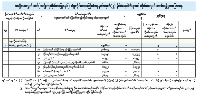 ၂၀၂၅ ခုနှစ် ပါတီစုံဒီမိုကရေစီအထွေထွေရွေးကောက်ပွဲ အပိုင်း(၃) အမျိုးသားလွှတ်တော် (အချိုးကျကိုယ်စားပြုစနစ်)၊ ပဲခူးတိုင်းဒေသကြီးမဲဆန္ဒနယ်အမှတ် (၁) နိုင်ငံရေးပါတီများ၏ ကိုယ်စားလှယ်လောင်းရရှိမှုအခြေအနေ