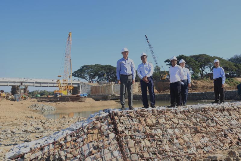 ပို့ဆောင်ရေးနှင့်ဆက်သွယ်ရေးဝန်ကြီးဌာန ပြည်ထောင်စုဝန်ကြီး ဦးမြထွန်းဦး ဆွာချောင်းတံတား ရေတိုက်စားကမ်းပြိုကာကွယ်ရေးလုပ်ငန်း ဆောင်ရွက်ထားရှိမှု အခြေအနေများနှင့် ဆင်သေချောင်း ရေကြီးရေလျှံမှု လျော့ပါးရေးလုပ်ငန်း၊ ဥယျာဉ်တံတားအဝင်ရေလမ်းပိုင်းနှင့် သိုက်ချောင်းတံတား ရေလမ်းပိုင်းတို့တွင် သောင်တူးဖော်ခြင်းလုပ်ငန်း ဆောင်ရွက်နေမှုများအား ကြည့်ရှုစစ်ဆေး