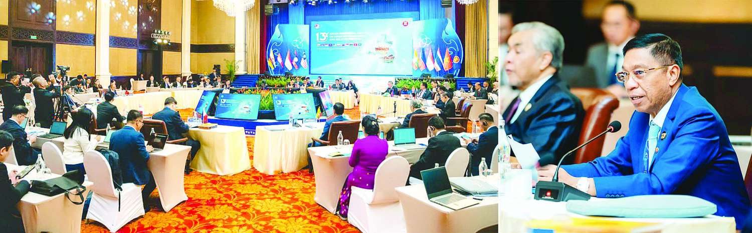 ကမ္ဘောဒီးယားနိုင်ငံ ဖနောင်ပင်မြို့တွင် အောက်တိုဘာ ၁၅ ရက်မှ ၁၇ ရက်အထိ ကျင်းပပြုလုပ်သည့် (၁၃) ကြိမ်မြောက် အာဆီယံသဘာဝဘေးအန္တရာယ်စီမံခန့်ခွဲမှုဆိုင်ရာ ဝန်ကြီးများအဆင့်အစည်းအဝေးနှင့် ဆက်စပ်အစည်းအဝေးများသို့ လူမှုဝန်ထမ်း၊ ကယ်ဆယ်ရေးနှင့်ပြန်လည်နေရာချထားရေးဝန်ကြီးဌာန ပြည်ထောင်စုဝန်ကြီး ဒေါက်တာ စိုးဝင်း ဦးဆောင်သော မြန်မာကိုယ်စားလှယ်အဖွဲ့တက်ရောက်လျက်ရှိသည်။