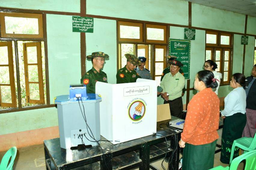 ပါတီစုံဒီမိုကရေစီအထွေထွေရွေးကောက်ပွဲအပိုင်း(၃) အောင်မြင်စွာ ကျင်းပနိုင်ရေးအတွက် ကြိုတင်ပြင်ဆင်မှုများဆောင်ရွက်နေသည့် တနင်္သာရီတိုင်းဒေသကြီး၊ ပုလောမြို့နယ်နှင့် ပုလောက်မြို့နယ်တို့ရှိ မဲရုံနေရာများအားယနေ့တွင် ကမ်းရိုးတန်းဒေသတိုင်းစစ်ဌာနချုပ် တိုင်မှူးဗိုလ်ချုပ် ကျော်ကျော်ဟန်နှင့် တာဝန်ရှိသူများက သွားရောက်စစ်ဆေးရာ တာဝန်ရှိသူများက အီလက်ထရောနစ်မဲပေးစက်(MEVM)များ ရောက်ရှိမှုအခြေအနေ၊ မဲပေးစက်များထားရှိမည့်နေရာ၊ မဲပုံးများထားရှိမည့်နေရာ စသည်ဖြင့် ကြိုတင်ပြင်ဆင်ထားရှိမှုများကို ရှင်းလင်းတင်ပြကြပြီး တင်ပြချက်များအပေါ်တိုင်းမှူးက လိုအပ်သည်များ ပေါင်းစပ်ညှိနှိုင်းဆောင်ရွက်ပေးသည်။