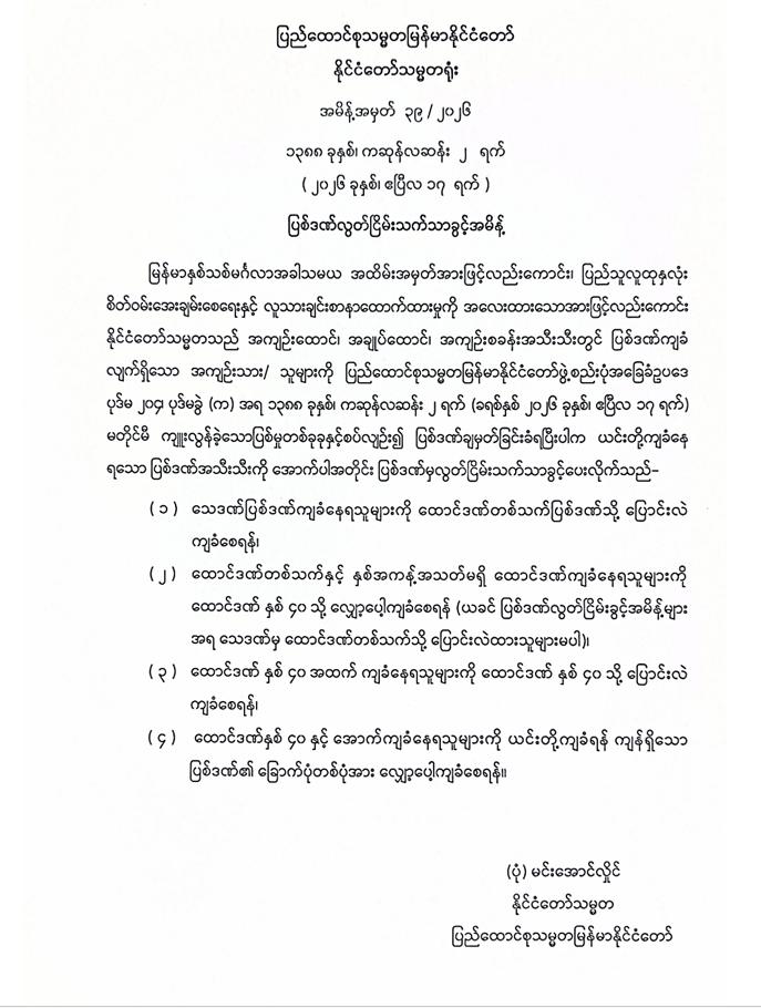 နေ့စဉ်မိုးလေဝသသတင်း (နံနက် ၇ နာရီ)ထုတ်ပြန်ချက်