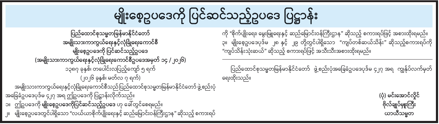 မျိုးစေ့ဥပဒေကို ပြင်ဆင်သည့်ဥပဒေ ပြဋ္ဌာန်း