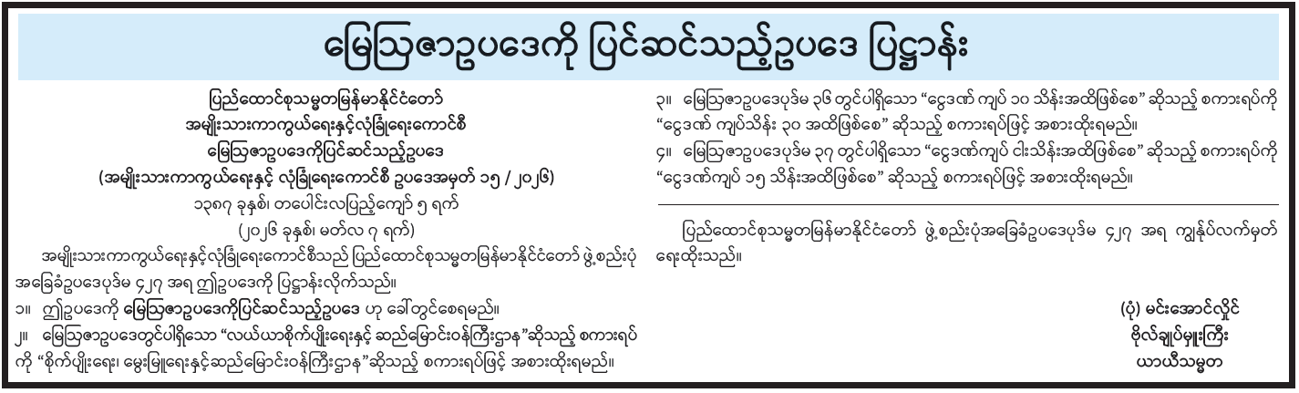 မြေဩဇာဥပဒေကို ပြင်ဆင်သည့်ဥပဒေ ပြဋ္ဌာန်း
