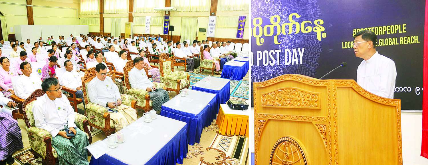 ပို့ဆောင်ရေးနှင့်ဆက်သွယ်ရေးဝန်ကြီးဌာန၊ ပြည်ထောင်စုဝန်ကြီး ဦးမြထွန်းဦး နေပြည်တော်ရှိ ပို့ဆောင်ရေးနှင့်ဆက်သွယ်ရေးဝန်ကြီးဌာန၌ ကျင်းပသည့် (၁၅၁) နှစ်မြောက် ကမ္ဘာ့စာပို့တိုက်နေ့ အခမ်းအနားသို့ တက်ရောက်