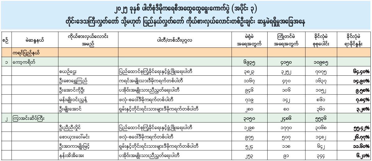 ၂၀၂၅ ခုနှစ် ပါတီစုံဒီမိုကရေစီအထွေထွေရွေးကောက်ပွဲ (အပိုင်း ၃) တိုင်းဒေသကြီးလွှတ်တော် သို့မဟုတ် ပြည်နယ်လွှတ်တော် ကိုယ်စားလှယ်လောင်းတစ်ဦးချင်း ဆန္ဒမဲရရှိမှုအခြေအနေ