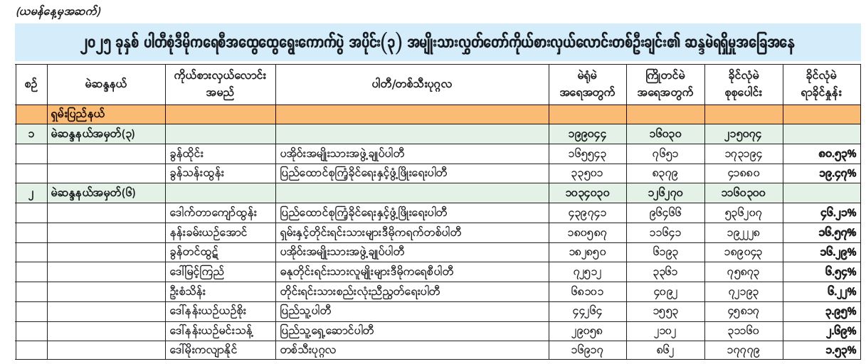 ၂၀၂၅ ခုနှစ် ပါတီစုံဒီမိုကရေစီအထွေထွေရွေးကောက်ပွဲ အပိုင်း (၃) အမျိုးသားလွှတ်တော်ကိုယ်စားလှယ်လောင်းတစ်ဦးချင်း၏ ဆန္ဒမဲရရှိမှုအခြေအနေ