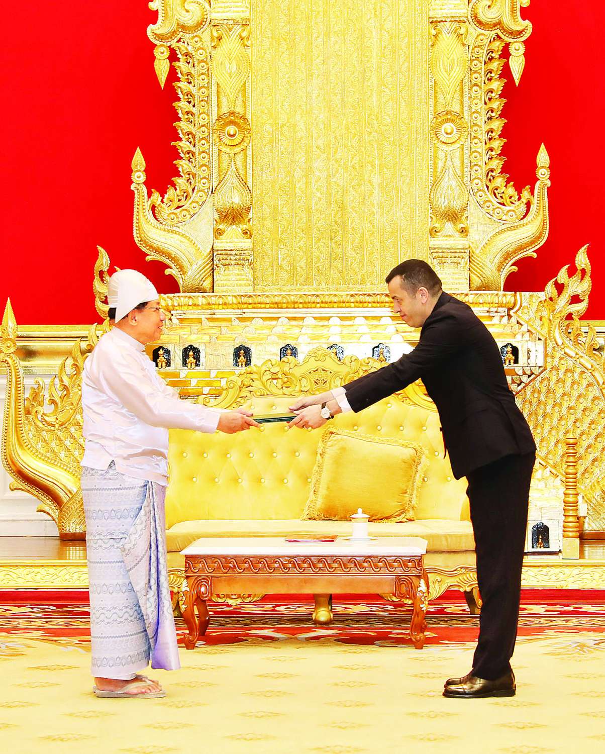 ပြည်ထောင်စုသမ္မတမြန်မာနိုင်ငံတော် ယာယီသမ္မတ နိုင်ငံတော်လုံခြုံရေးနှင့် အေးချမ်းသာယာရေးကော်မရှင်ဥက္ကဋ္ဌ ဗိုလ်ချုပ်မှူးကြီး မင်းအောင်လှိုင်ထံ မြန်မာနိုင်ငံဆိုင်ရာ အယ်လ်ဂျီးရီးယား ပြည်သူ့ဒီမိုကရက်တစ်သမ္မတနိုင်ငံ သံအမတ်ကြီး H.E. Mr. Azeddine BECHKA က ယနေ့နံနက် ၁၀ နာရီတွင် နေပြည်တော်ရှိ အမျိုးသားကာကွယ်ရေးနှင့် လုံခြုံရေးကောင်စီရုံးသံတမန်ဆောင်ဧည့်ခန်းမ၌ ၎င်း၏ သံအမတ်ခန့်အပ်လွှာကို ပေးအပ်သည်။