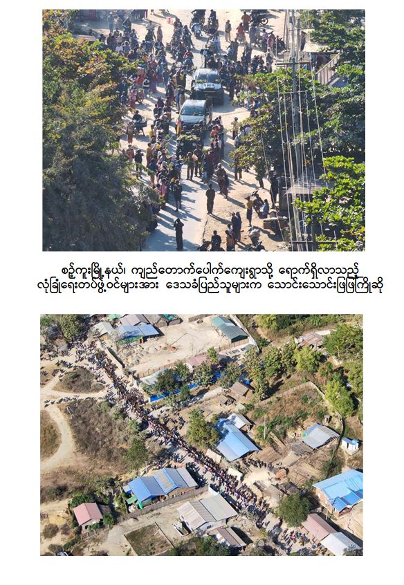စဉ့်ကူးမြို့နယ်၊ ကျည်တောက်ပေါက်ကျေးရွာသို့ ရောက်ရှိလာသော လုံခြုံရေးတပ်ဖွဲ့ဝင်များအား ဒေသခံပြည်သူများက သောင်းသောင်းဖြဖြ ဝမ်းပန်းတသာကြိုဆို