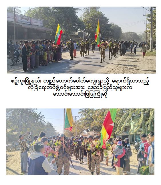 တပ်မတော်စစ်ကြောင်းများအနေဖြင့် အဆိုပါစဉ့်ကူးမြို့နယ်အတွင်း အကြမ်းဖက်သောင်းကျန်းသူများ ခိုအောင်းနေထိုင်မှုမရှိစေရေးအတွက် လိုအပ်သည့် နယ်မြေလုံခြုံရေးလုပ်ငန်းများကို ဆောင်ရွက်လျက်ရှိပြီး ယနေ့တွင် စဉ့်ကူးမြို့နယ်၊ ကျည်တောက်ပေါက်ကျေးရွာသို့ ရောက်ရှိကြရာ ဒေသခံတိုင်းရင်းသားပြည်သူများက အောင်သပြေပန်းများ၊ ပန်းကုံးများဖြင့် သောင်းသောင်းဖြဖြ ဝမ်းပန်းတသာကြိုဆိုကြသည်။