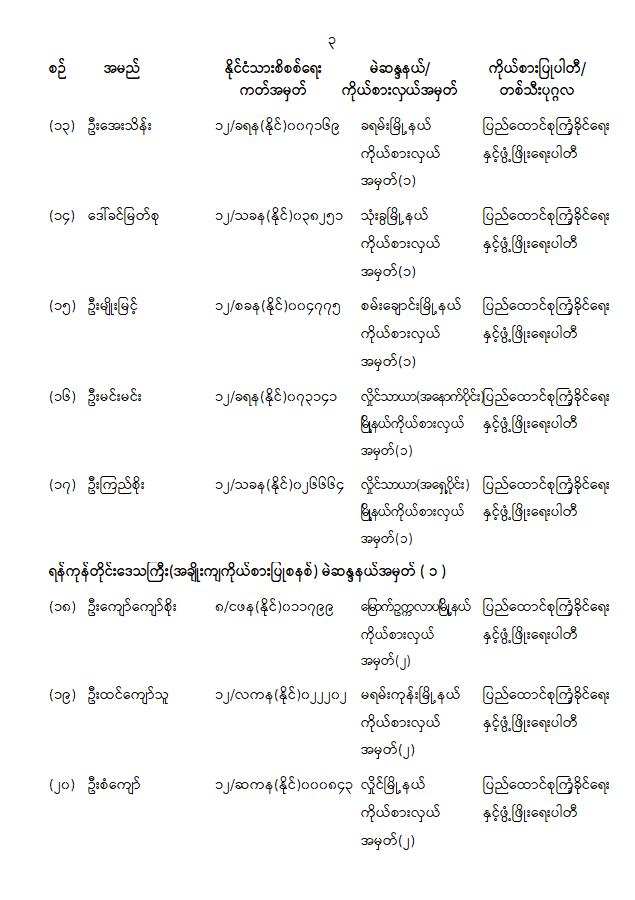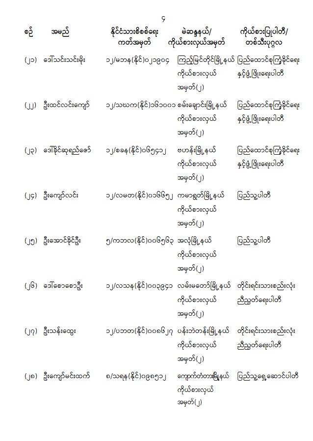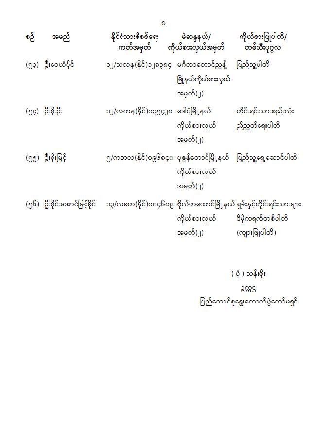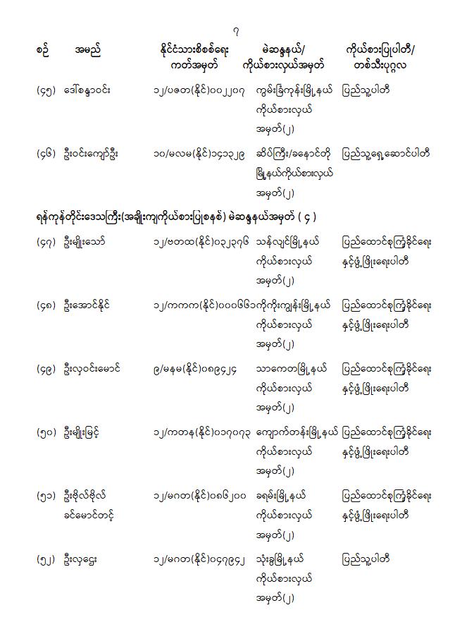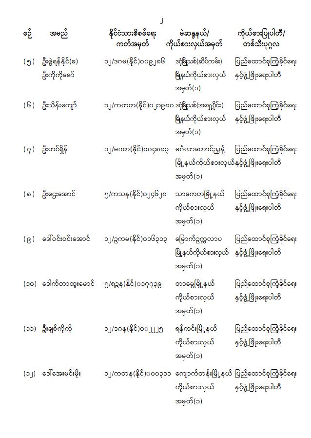 တိုင်းဒေသကြီးလွှတ်တော် သို့မဟုတ် ပြည်နယ်လွှတ်တော်ကိုယ်စားလှယ်အဖြစ် ရွေးကောက်တင်မြှောက်ခံရသူများ အမည်စာရင်းကြေညာခြင်း