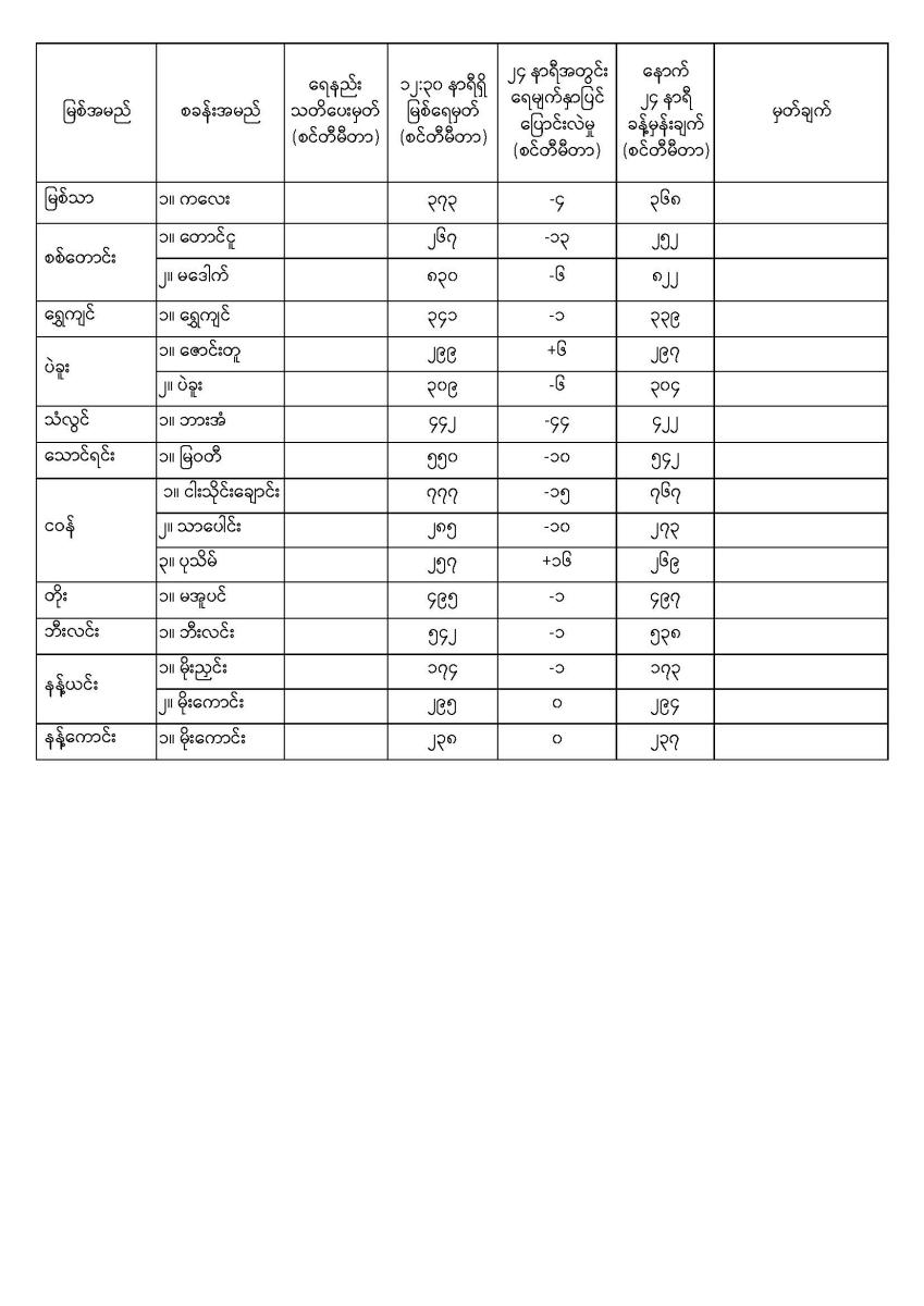 နေ့စဉ်မြစ်ရေခန့်မှန်းချက် ၁၆-၁၁-၂၀၂၅ ရက်နေ့ ၁၄:၀၀ နာရီအချိန်ထုတ်ပြန်ချက်