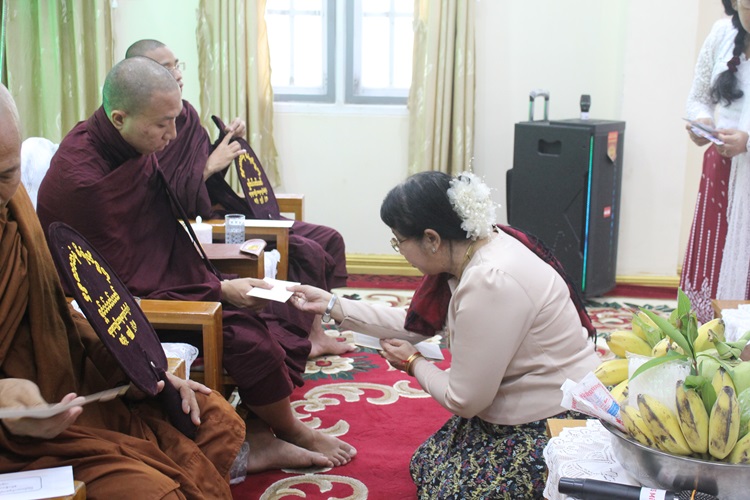 ၂၀၂၆ ခုနှစ်၊ ဧပြီလ ၂၀ ရက်နေ့၊ နံနက် ၁၀:၃၀ နာရီတွင် ပြည်ထောင်စုစာရင်းစစ်ချုပ်ရုံး ကုသလဓမ္မာရုံ၌ ပျဉ်းမနားမြို့၊ ရတနာဘုမ္မိသာရကျောင်းတိုက်မှ သံဃာတော် အရှင်သူမြတ် ၅ ပါးကို ပင့်ဖိတ်၍ နှစ်ဦးဆွမ်းနှင့် လှူဖွယ်ဝတ္ထု အစုစုတို့ကို ဆက်ကပ်လှူဒါန်းပြီး ပြည်ထောင်စု စာရင်းစစ်ချုပ် ဒေါ်နိုင်သက်ဦး၊ ဒုတိယစာရင်းစစ်ချုပ် ဒေါ်ခိုင်ခိုင်အောင်၊ ညွှန်ကြားရေးမှူးချုပ် များနှင့် တာဝန်ရှိသူများသည် လှူဒါန်းမှုအစုစုအတွက် ရေစက်သွန်းချအမျှပေးဝေခဲ့ကြသည်။