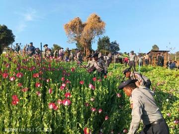၂၀၂၆ ခုနှစ်၊ ဖေဖော်ဝါရီ ၂ ရက်က ရှမ်းပြည်နယ်အတွင်းရှိ မြို့နယ်အချို့၌ စုစုပေါင်း ဘိန်းစိုက်ခင်း ၃၂၈ ဧကခန့်အား ဖျက်ဆီးခဲ့ကြောင်း သိရသည်။