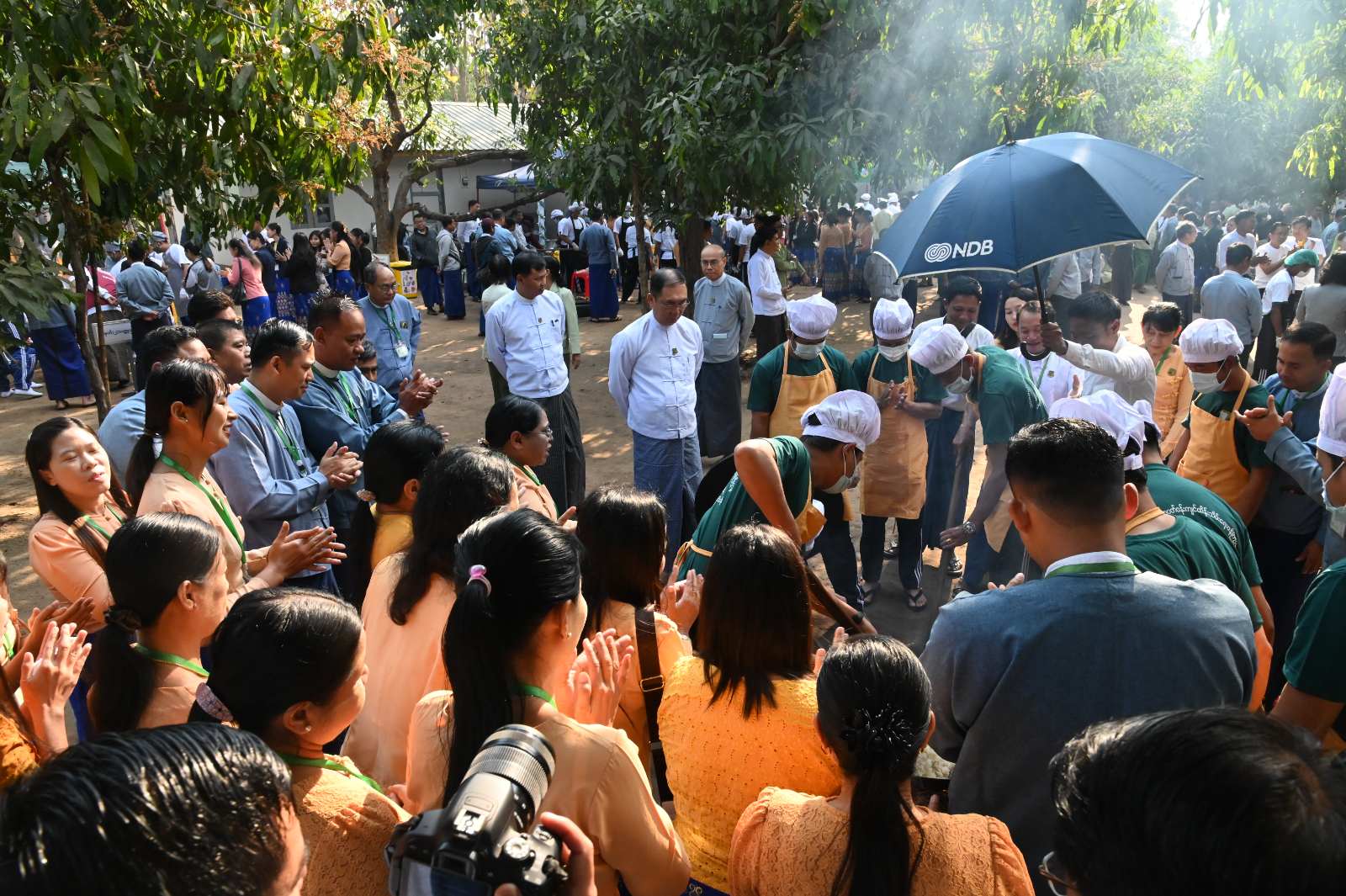 ရှေးဦးစွာ ပြည်ထောင်စုဝန်ကြီးက မြန်မာ့ရိုးရာ ထမနဲထိုးပြိုင်ပွဲအား ဖွင့်လှစ်ပေးပြီး ဌာနများနှင့် တက္ကသိုလ်တို့မှ ပြိုင်ပွဲဝင်အသင်း (၁၂) သင်း၏ ထမနဲထိုး ယှဉ်ပြိုင်နေမှုအား လှည့်လည် ကြည့်ရှု အားပေးသည်။