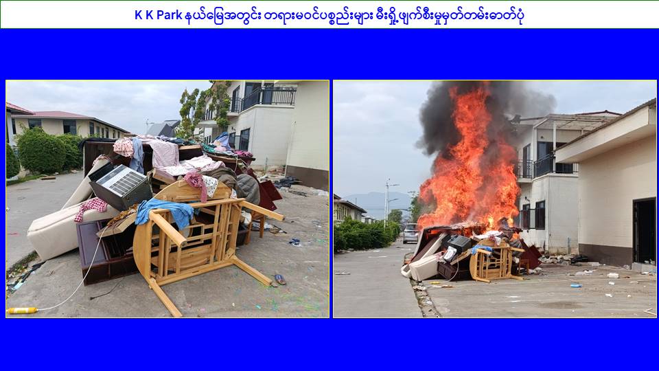 ၎င်းအပြင် KK park နှင့်ရွှေကုက္ကိုလ်နယ်မြေရှိ အွန်လိုင်းလိမ်လည်လောင်းကစားမှု ကျူးလွန်ရာတွင် အသုံးပြုခဲ့သည့် ပစ္စည်းများအား ထပ်မံအသုံးပြုမှုမရှိစေရေးအတွက် ယနေ့တွင်လည်း စနစ်တကျမီးရှို့ဖျက်ဆီးခဲ့ကြောင်းနှင့် နိုင်ငံတော်အစိုးရအနေဖြင့် အွန်လိုင်းလိမ်လည်လောင်းကစားမှုကျူးလွန်မှုများကို အမျိုးသားရေးတာဝန်တစ်ရပ်အဖြစ် ခံယူကာ မြန်မာနိုင်ငံအတွင်း လုံးဝအခြေမပြုနိုင်ရေး ပြည်တွင်းအင်အားစုများအပြင် အိမ်နီးချင်းနိုင်ငံအစိုးရများနှင့်လည်း ပေါင်းစပ်ညှိနှိုင်း၍ ဆက်လက်ဆောင်ရွက်သွားမည်ဖြစ်ကြောင်း သတင်းရရှိသည်။