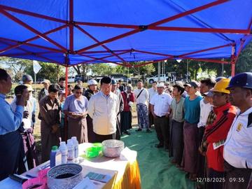 ၂၀၂၅ ခုနှစ်၊ ဒီဇင်ဘာ ၁၈ ရက် နံနက် ၉ နာရီ ၃၀ မိနစ်တွင် ဧရာဝတီတိုင်းဒေသကြီး၊ ပုသိမ်မြို့နယ်၊ ပေါက်ကုန်းကျေးရွာတွင် မြို့နယ်သမဝါယမဦးစီးဌာနမှ ၂၀၂၅ - ၂၀၂၆ ခုနှစ်၊ ဆီထွက် သီးနှံနေကြာ MAKHAON KLP/ IPPOLIT/ VULKAN OR (ရုရှား) မျိုး စိုက်ပျိုးပြသပွဲ အခမ်းအနားသို့..........................................