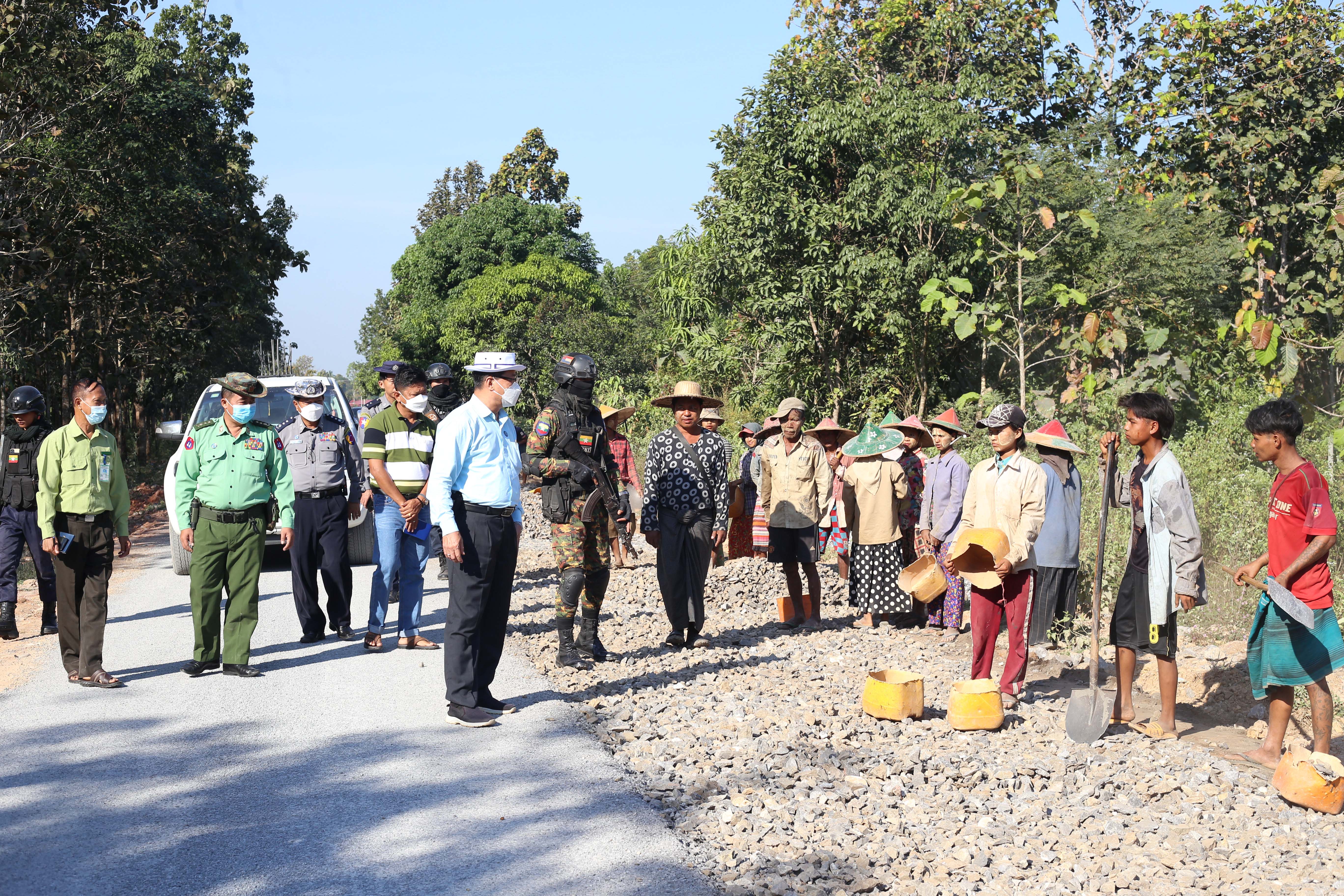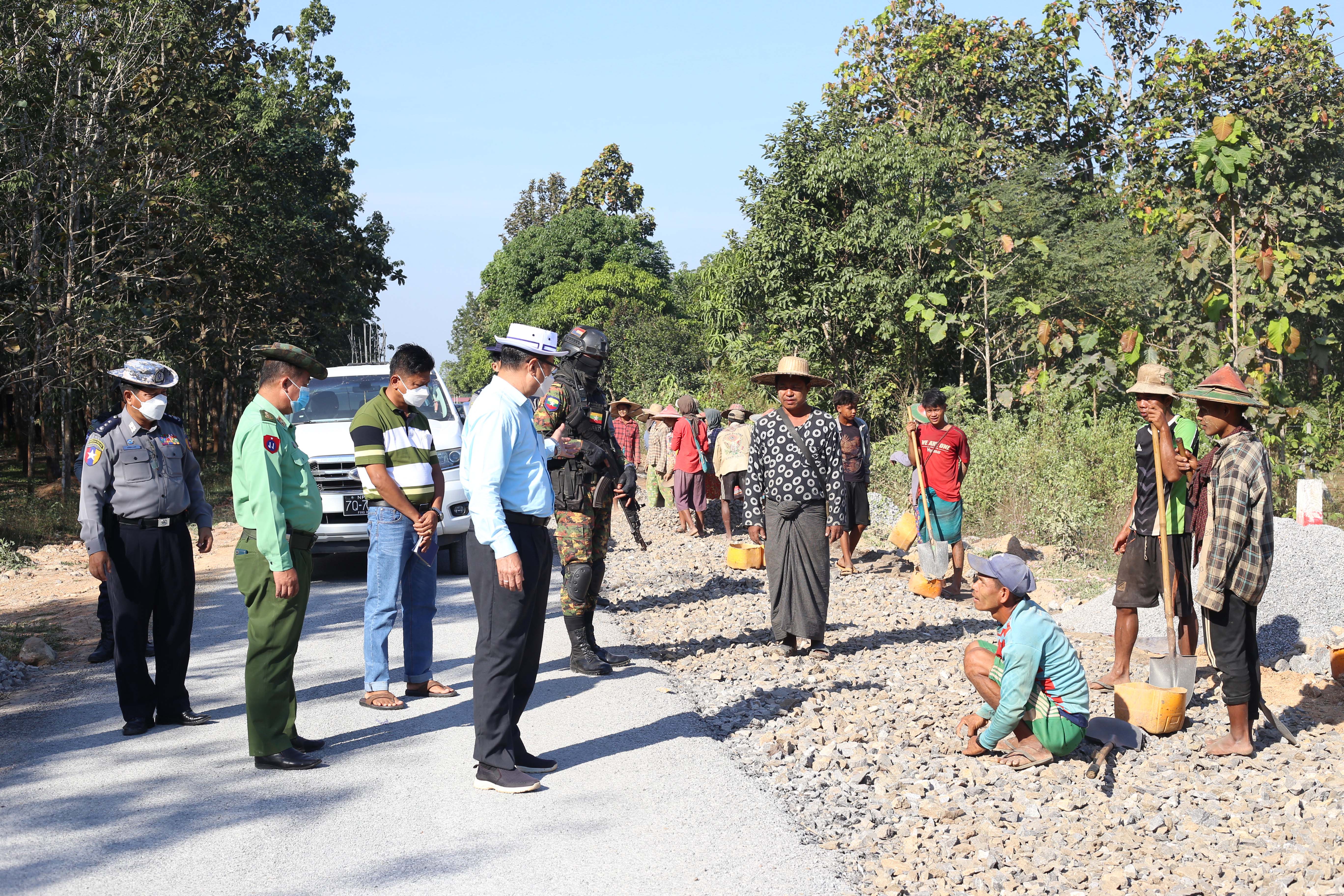 ယင်းနောက် ထီလုံ-တာပေါင်-ပတ-နဘူး-ကော့ကရိတ်(တံတားကျိုး) လမ်း ၂၀ ဒဿမ ၁ ကီလိုမီတာမှ ၃၃ ဒဿမ ၅ ကီလိုမီတာအတွင်း ၁၃ ဒဿမ ၄ ကီလိုမီတာအား လမ်းအထူးအဖွဲ့ ၂၂ ၏ကြီးကြပ်မှုဖြင့် ဒေါနအလင်းတန်း ကုမ္ပဏီနှင့်ဝေဇယံကုမ္ပဏီတို့မှ မူလကတ္တရာလမ်း ၃ ဒဿမ ၆၆ မီတာအကျယ် အား ၅ ဒဿမ ၅ မီတာအကျယ် ကတ္တရာလမ်းတိုးချဲ့အဆင့်မြှင့်တင်ခြင်းလုပ်ငန်း ၆၀ ရာခိုင်နှုန်းခန့် ဆောင်ရွက်ပြီးစီးမှုအခြေအနေများအား ကြည့်ရှု စစ်ဆေးခဲ့ကြသည်။