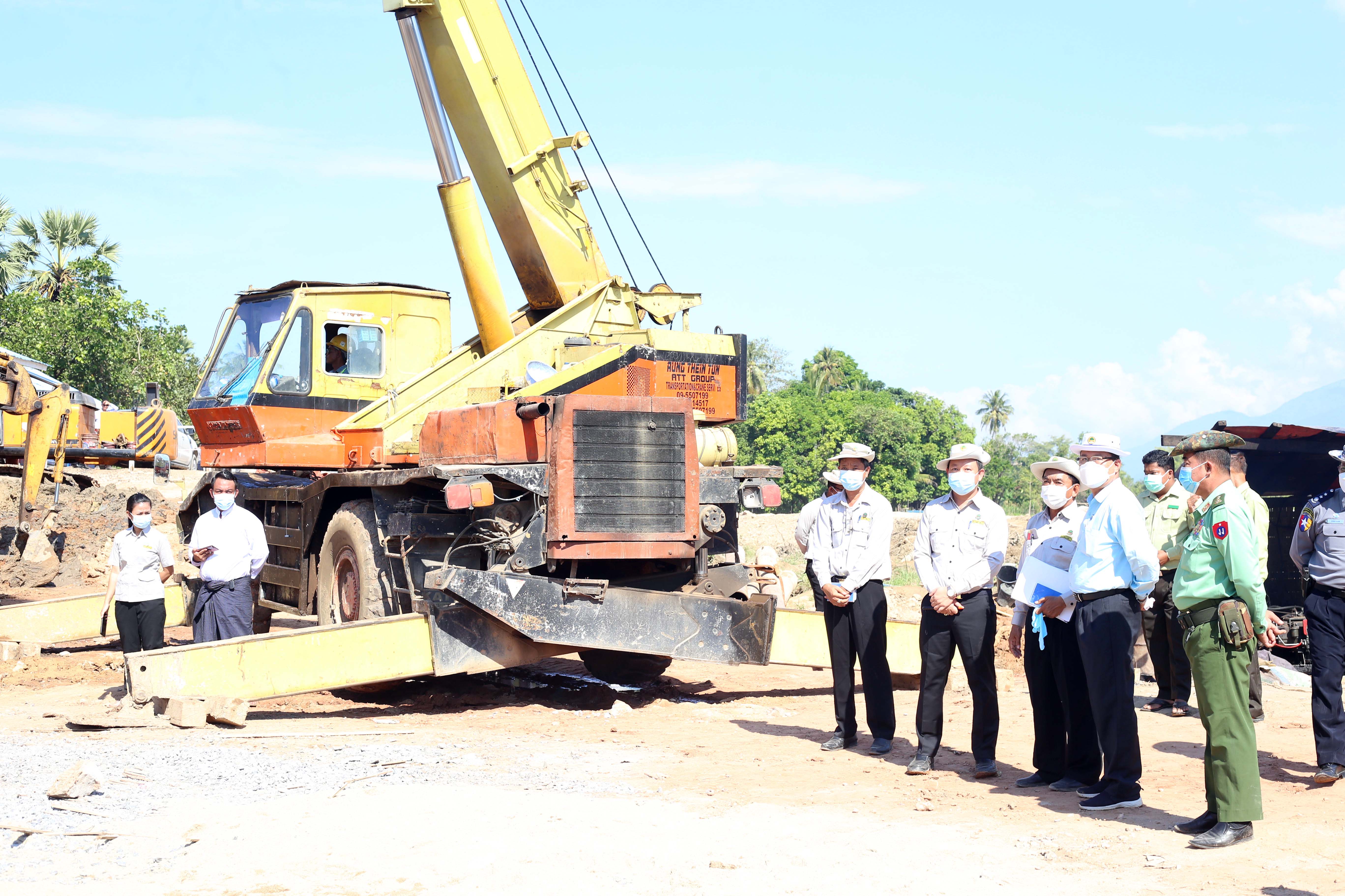 ဆက်လက်၍ ပြည်နယ်ဝန်ကြီးချုပ်နှင့်အဖွဲ့သည် ထီလုံ-တာပေါင်-ပတ-နဘူး-ကော့ကရိတ်(တံတားကျိုး) လမ်းပေါ်ရှိ တံတားအမှတ် ၂/၃၀ ပေ(၈၀) သံကူကွန်ကရစ်တံတားတည်ဆောက်ခြင်းအား တံတားအထူးအဖွဲ့ ၁၄ မှ ၅၂ ရာခိုင်နှုန်းခန့် ဆောင်ရွက်ပြီးစီးမှုအခြေအနေ၊ အဆိုပါလမ်းပေါ်ရှိ တံတားအမှတ် ၅/၃၀ ပေ ၁၂၀ အရှည် သံကူကွန်ကရစ်တံတားတည်ဆောက်ခြင်းအား တံတားအထူးအဖွဲ့(၁၄)မှ ၄၀ ရာခိုင်နှုန်းခန့် ဆောင်ရွက်ပြီးစီးမှုအခြေ အနေများကို ကြည့်ရှုစစ်ဆေးရာ လမ်းဦးစီးဌာနညွှန်ကြားရေးမှူးနှင့် တံတားအထူးအဖွဲ့ ၁၄ လက်ထောက်ညွှန်ကြား ရေးမှူးဦးဝေဖြိုးတို့က လုပ်ငန်းဆောင်ရွက်မှုအခြေအနေများကို ရှင်းလင်းတင်ပြကြပြီး ပြည်နယ်ဝန်ကြီးချုပ်က လိုအပ်သည်များလမ်းညွှန်မှာကြားသည်။